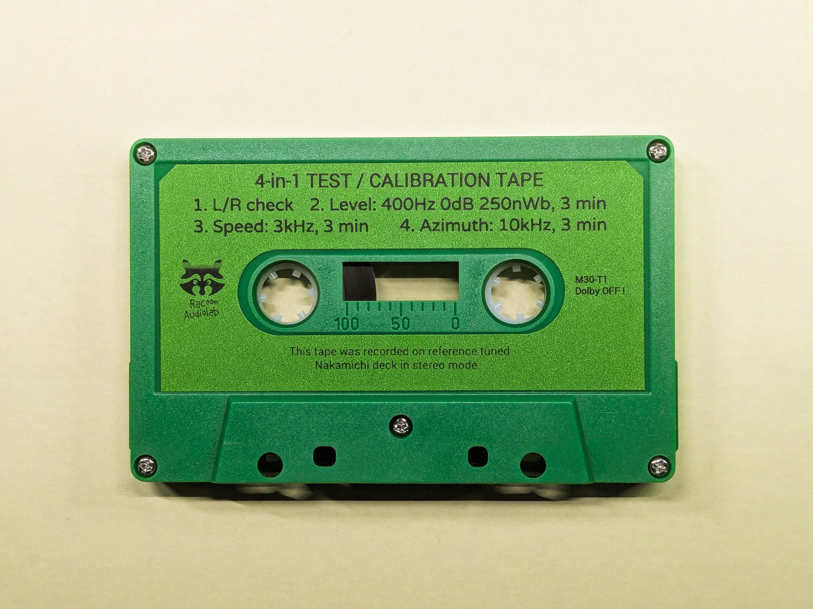 Test/Calibration tape for AKAI, PONEER, SONY, TEAC cassette decks manufactured after 1981.Content:1. Left / Right voice channel check 2. Level: 400Hz (0dB DIN Reference 250mWb) - 3 min3. Speed: 3000Hz - 3 min4. Azimuth: 10kHz - 3 min! Dolby OFF*This tape was recorded in stereo mode on a reference-tuned Nakamichi deck from digital 96kHz/24bit source.Only Maxell, TDK, Sony, Fuji, 3M tapes of a greater thickness are used for these cassettes.We have different variants of test/calibration tapes.You can find them by clicking this link: "Seller's other items" We do not accept returns or issue refunds. You purchase a tape with a recording and assume all risk as it travels in unknown conditions to its destination. Anything with a magnetic field can travel near the tape and disrupt the stability and level of the recording. We are not responsible for the actions of the postal services.Thank you for your understanding.Dear fans of vintage analog sound! We are glad that our products help you set up your cassette equipment. We enjoy music with you!