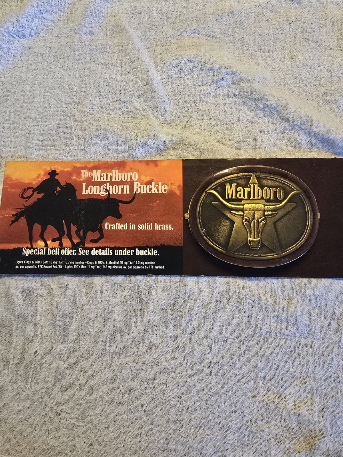 Marlboro Longhorn Solid Brass Belt Buckle, Western Cowboy NOS