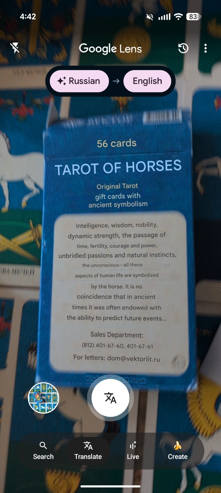 Rare Russian Tarot Of Horses 56 Card Deck & LWB In today's world, a pragmatic approach to life is strong. But sometimes you really need a hint of intuition, when information seems to come from somewhere above! Tarot cards have long been the best tool for working with intuition. The Tarot of the Horses allows you to get to the heart of a situation, find a solution, and discover the strength within you to make the necessary changes. The deck is especially helpful in matters related to understanding inner motives, revealing what drives a person and their true desires. The set includes 56 gift cards and an instruction booklet. Intelligence, wisdom, nobility, dynamic strength, the passage of time, fertility, courage and power, unbridled passions and natural instincts, the unconscious—all these aspects of human life are symbolized by the horse. It is no coincidence that in ancient times it was often endowed with the ability to predict future events... The Horse Tarot allows you to get to the heart of a situation, find a solution, and discover the strength you need to make the necessary changes. The deck is especially helpful in understanding inner motivations, revealing what drives a person and their true desires.