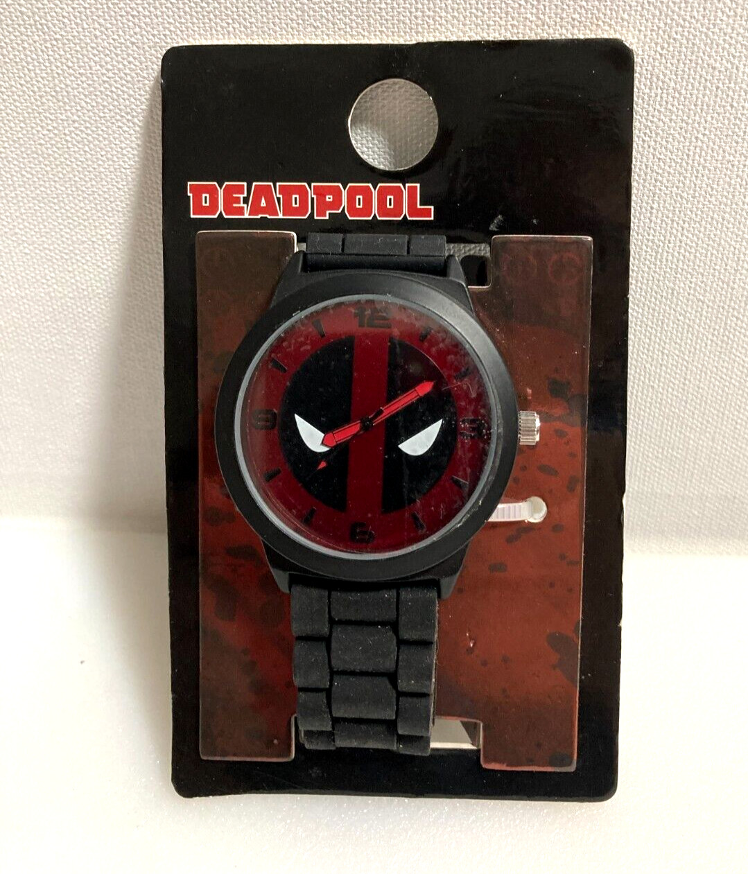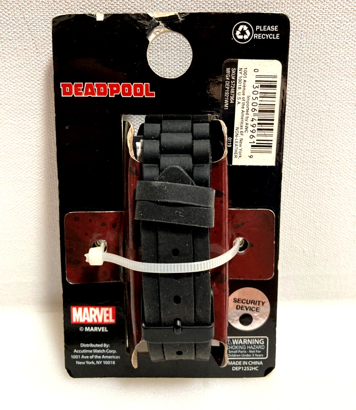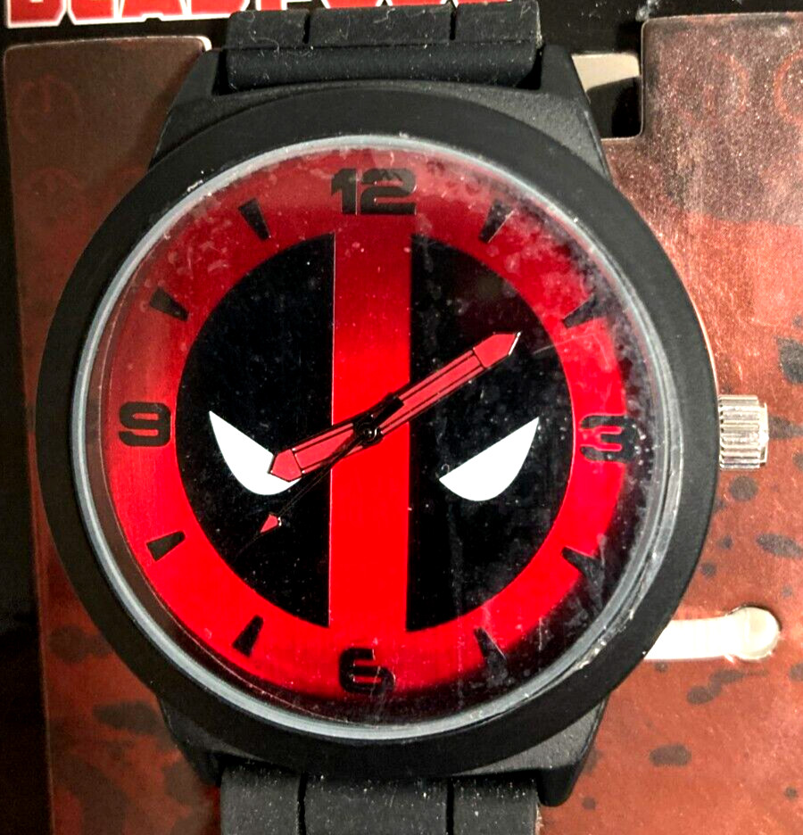 Marvel Comics DeadPool Face Accutime Watch Large Men's New on Card Rubber Strap.Original Paperwork is in The back of the CardNote: The Protective Film on the Watch Face May Blur the Image Slightly