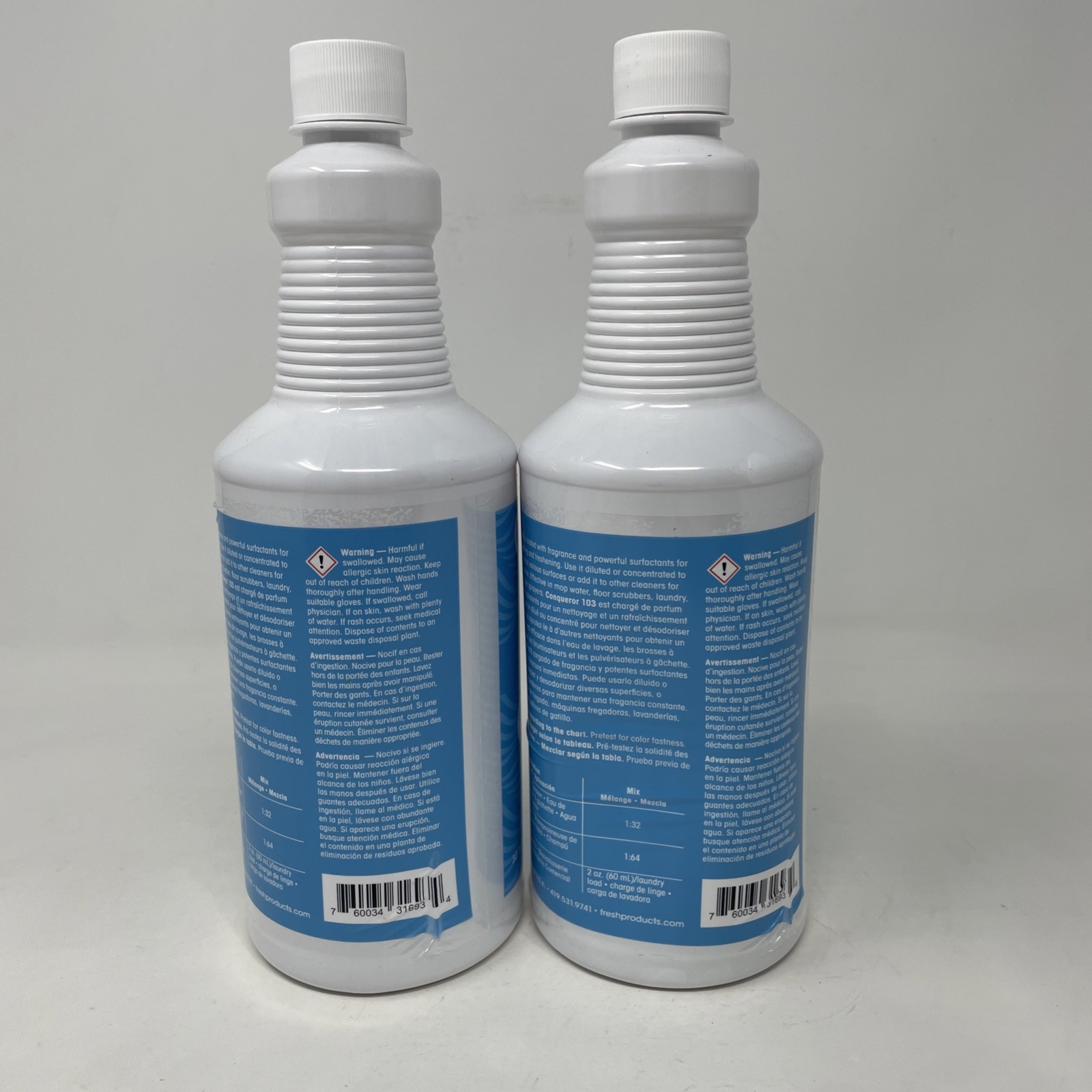 The product is a set of two 32 oz. Conqueror 103 Concentrate sanitizers in the TUTTI FRUTTI flavor by Fresh Products. These sanitizers are specifically designed for use in pressure washers and are made by the trusted brand Fresh Products. The product is ideal for those in need of high-quality cleaning and janitorial supplies, providing a fresh and effective solution for maintaining cleanliness and hygiene in various settings.