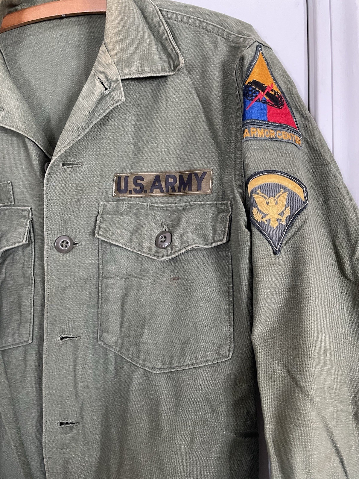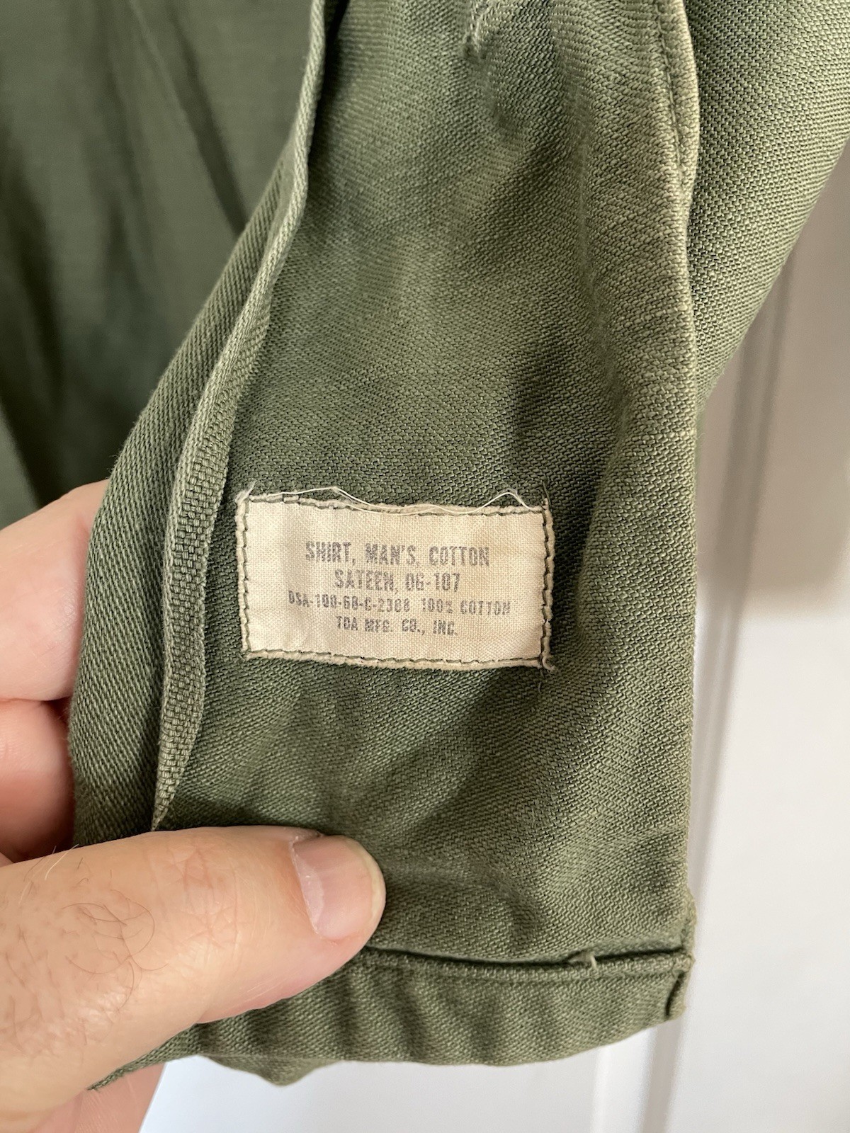 Original VIETNAM 25th Infantry Division OG 107 Fatigue Shirt Spec-5 1968 Dated WITH TWILL SUBDUED PATCH! Comes with pin that was in pocket- last photo As shown