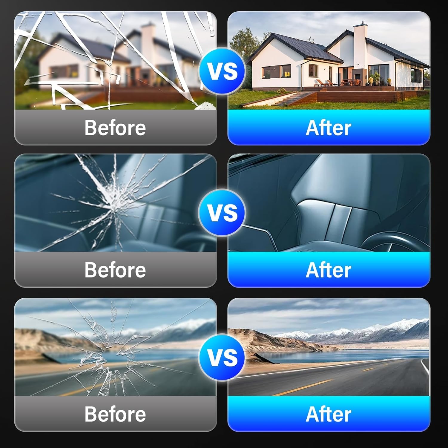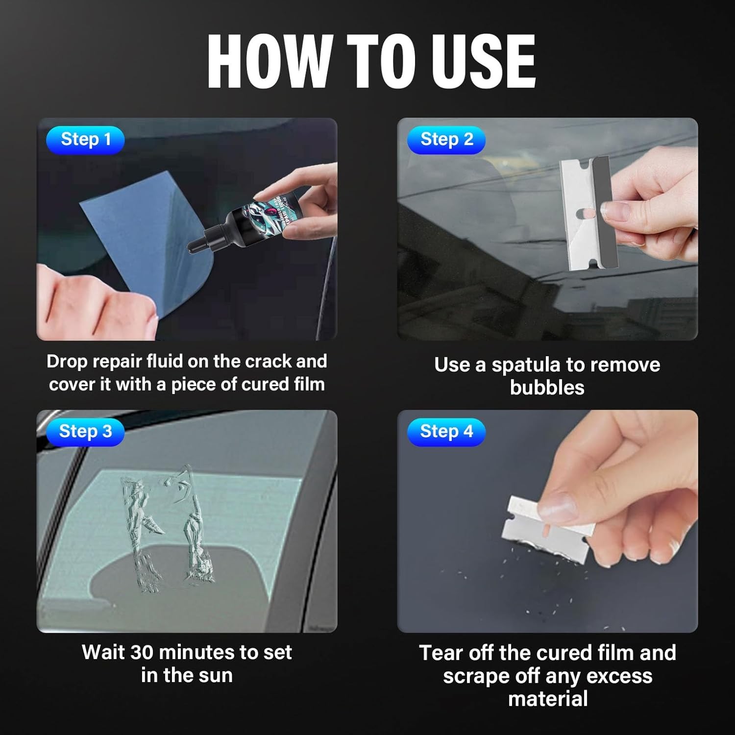 2PCS Upgrade Crack Repair Kit, New Cracks Gone Glass Repair Kit, Professional Automotive Easy-to-use Chip Repair Tool, Quick Fix Windshields, Mirrors, All Crack TypesQuick and Efficient Crack Repair: This upgraded windshield crack repair kit is designed to effectively restore chips and cracks in just 20–30 minutes, helping extend the life of your car windshield. Professional-Level Results: Achieve clear, smooth repairs without costly service visits. This glass repair tool is ideal for car owners who want to maintain their vehicles at home. Easy-to-Use Application Process: Simple steps for quick repairs. Just apply the glass repair agent for cracks, use curing film, and let it dry in sunlight. Even first-time users can repair windshield chips confidently and safely. Strong Resin Formula for Lasting Results: The advanced resin formula fills cracks, hardens quickly, and forms a durable bond that helps prevent spreading and further damage. Compact Kit for Daily Vehicle Maintenance: Small, portable, and easy to store in your glove box, ideal for daily use and crack repairs on the go. Product dimensions: 4.13 x 2.56 x 2.56 inches.