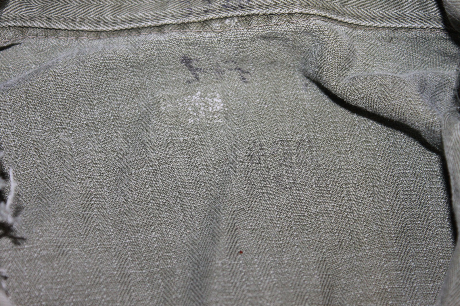 This is one of several pieces of usmc clothes I got at an estate sale recently. It looks to be a p56 utility shirt-jacket. Not sure what era it is from but looks early. Has buttons . Looks like a bit of writing on the interior but is faded. I measure the chest at 42" and length at 26" . It is the herringbone pattern material. Please look at all the photos and email with any questions. Thanks for looking. Also will be listing pants.