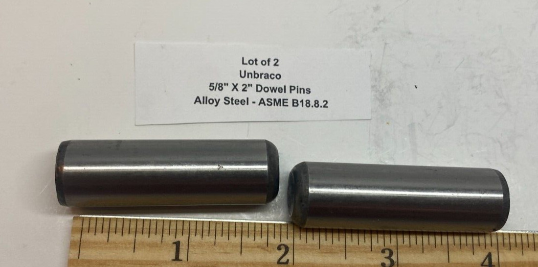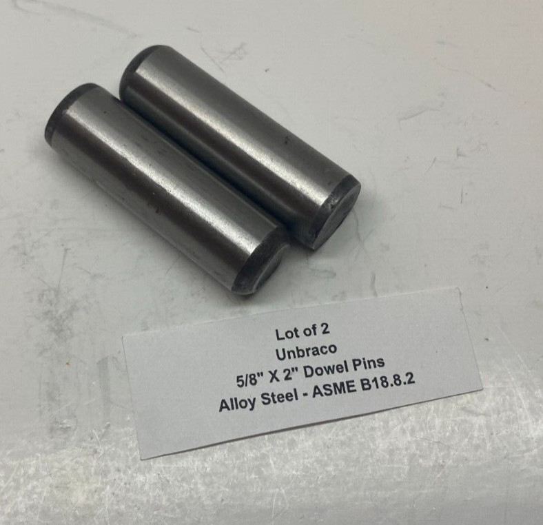 Lot of 2 Unbraco 5/8" X 2" Dowel Pin - Alloy Steel - ASME B18.8.2 - Prepaid ShippingDescription - New, Sold in a lot of 2 pieces Ships Quickly from St. Louis