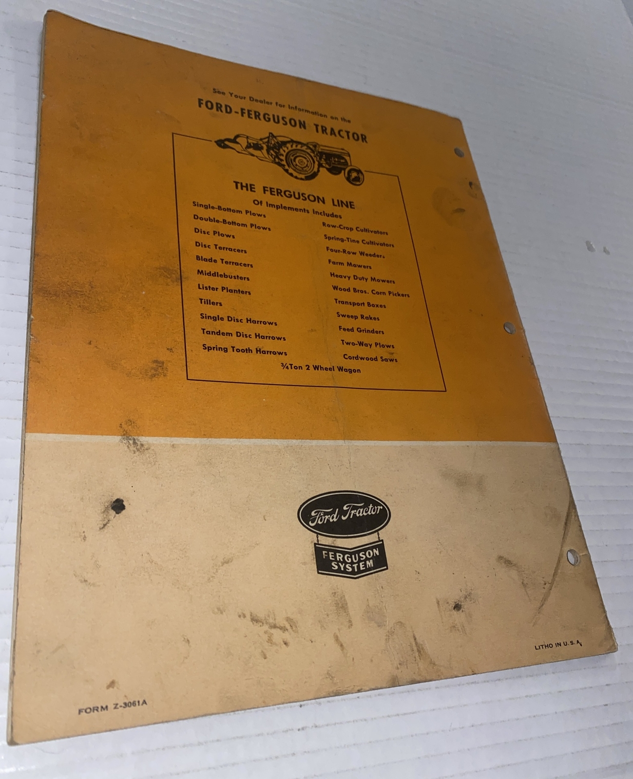 This vintage operating instruction manual is a must-have for collectors and enthusiasts of Ford tractors. The manual covers the heavy-duty mower PEO 21 for the Ferguson System Ford Tractor and provides detailed information on operating the machinery. The manual is an original piece from the United States.The manual is a fun addition for those interested agriculture collectibles. The manual is specific to the Ford tractor brand and is fun for those looking to complete their Ford tractor collection.32 Pages plus coversMeasures approx. 11” x 8.5” closedFree shipping to USA