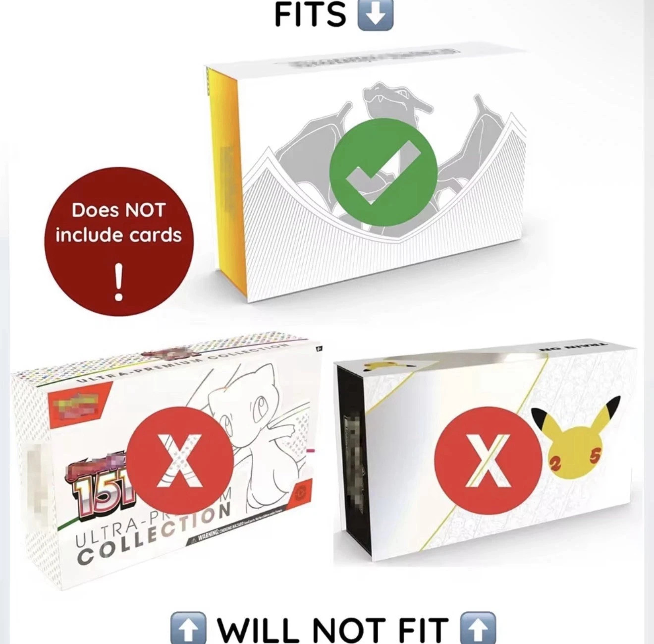 Protect one of the most sought-after modern Pokémon releases with the Sword & Shield Ultra-Premium Collection: Charizard Acrylic Display Case by TCGGhostTrainer. Designed for serious collectors, this premium clear case delivers both long-term protection and a clean, high-end display for your sealed Charizard UPC. Whether showcased as a centerpiece or preserved for the future, this case keeps your collection secure while allowing the artwork and factory seal to remain fully visible. ⚠️ Designed specifically for Sword & Shield Charizard Ultra-Premium Collection ONLY ⚠️ ASSEMBLY REQUIRED Features & Details: Premium Clear Acrylic Construction Made from high-quality acrylic for exceptional durability and crystal-clear visibility, ensuring your Charizard UPC is displayed without distortion. UV Protection Helps minimize fading from light exposure, preserving the bold Charizard artwork and original packaging colors. Custom Fit for Sword & Shield Charizard UPC Precision-designed to securely house the Sword & Shield Ultra-Premium Collection: Charizard while protecting the factory seal. DIY Assembly Required Ships flat for safe transit and easy storage. Assembly is simple and satisfying for collectors who enjoy hands-on setup. Elegant Display Solution Perfect for shelves, display cases, offices, or game rooms, this acrylic case adds a premium, museum-style presentation to any Charizard collection. PLEASE NOTE: This listing is for the acrylic display case only. Pokémon products are not included. Thank you for choosing TCGGhostTrainer — built by collectors, for collectors who take pride in protecting iconic Pokémon releases.