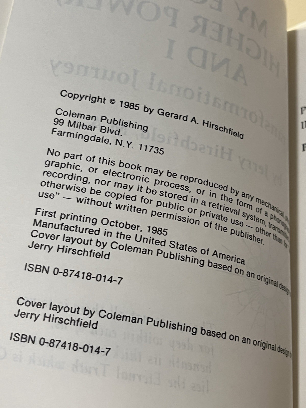 My Ego, My Higher Power And I: A Transformational Journey by Jerry Hirschfield (1985) is offered here in used condition. This listing is suitable for readers looking for a vintage copy or collectors seeking this edition. As no additional description is provided, check the listing for details on the exact format, binding, and any notes on wear or markings. Price is $19.95 USD and shipping is free shipping.