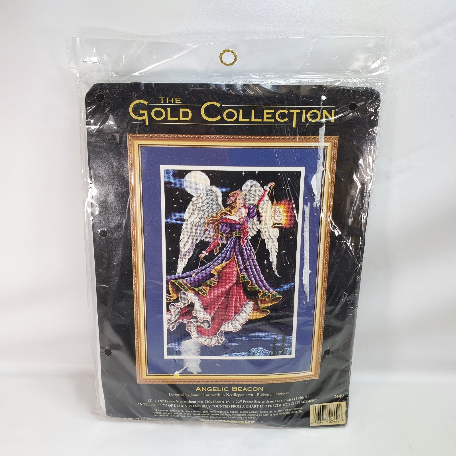 Vintage Dimensions Gold Collection Angelic Beacon Needlepoint Kit Ribbon USA Specs