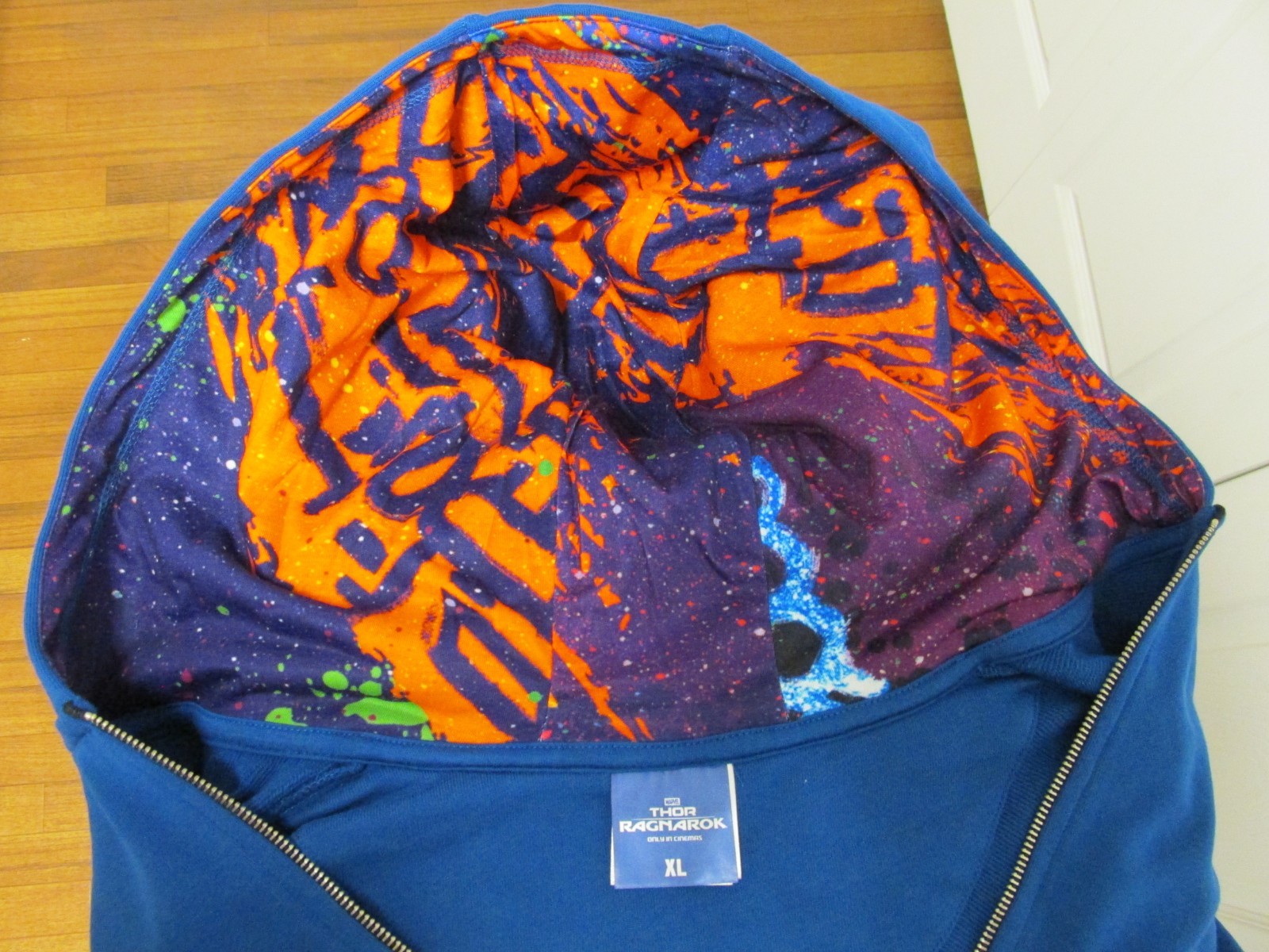 "You will look like raging fire in this THOR RAGNAROK hoodie." - Hulk (A friend from work) Need to look godly while walking around New Asgard? You will receive a "NEW" and unworn gorgeous beyond rare THOR RAGNAROK XL (Men's) MOVIE PREMIERE HOODIE!!! This hoodie was only made available to media crew members promoting the movie...and very few were produced. It has logos galore...including full movie title on the back...space universe wormhole artwork inside the hood...and a metal THOR helmet logo on the front just like the one he wears in the movie!!! Dress like an Asgardian warrior at all your MARVEL screenings!!! Shipped insured and secure. Please view my other items. Thank you.