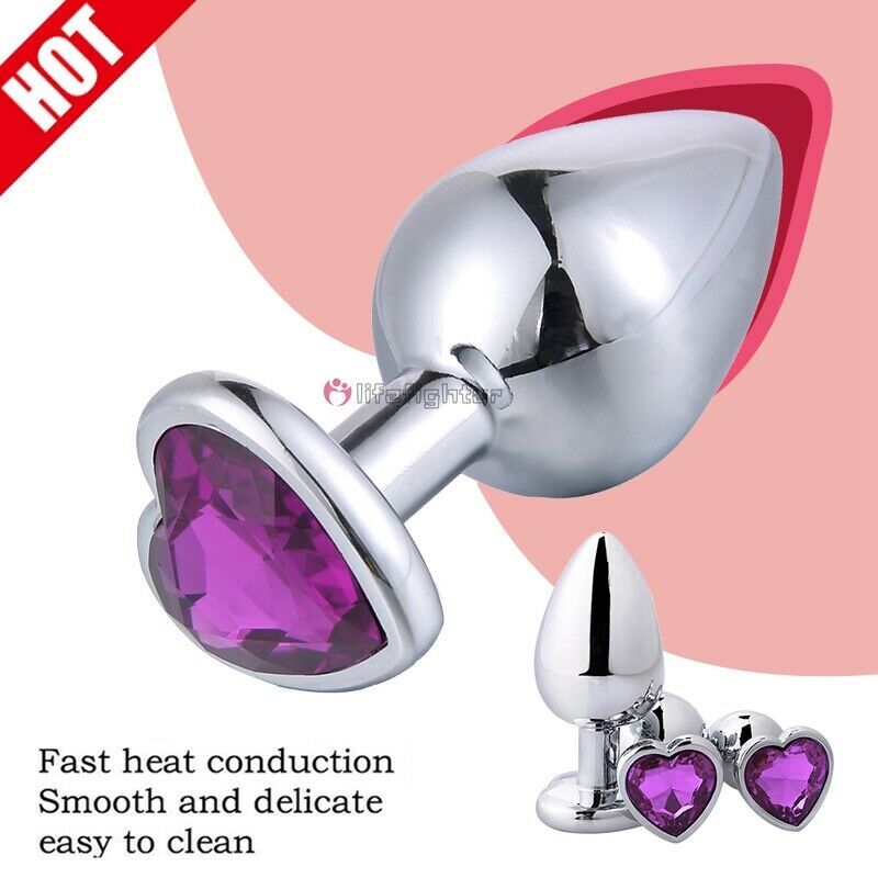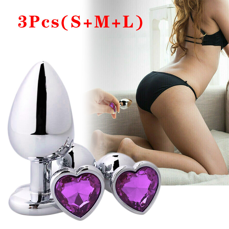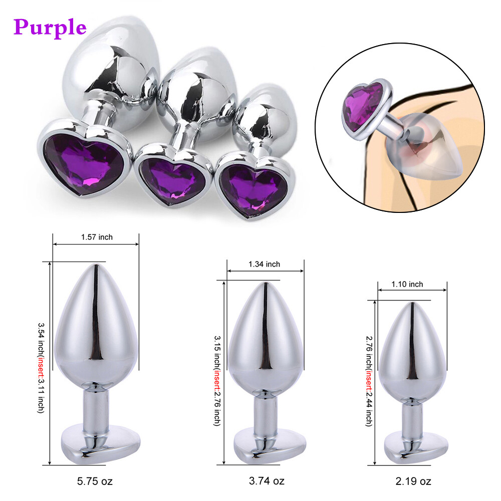 3pcs Metal Heart Anal Butt Plugs Jeweled Orgasm S/M/L Men Women Sex Toys Purple