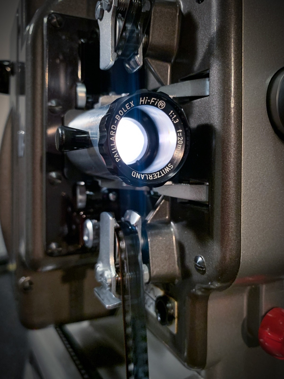 Swiss Made Bolex Paillard M8 - The Rolls-Royce of 8mm ProjectorsSwiss-made precision meets film noir elegance. This meticulously restored Bolex M8 represents the pinnacle of 1959 8mm projection technology—worlds apart from the humble Kodak Brownie projector I had as a 14 year old boy.What Makes It Special:Stroboscopic speed control with variable speed adjustment makes this projector exceptional for both screening and film-to-digital transfers. I’ve successfully used it to transfer vintage 8mm footage to 4K video, with the variable speed eliminating those annoying rolling bars by allowing precise synchronization between projector and camera speeds.Unlike later-era projectors built largely of plastic, the M8 is built like a tank. Bolex approached projector manufacturing with the same precision craftsmanship philosophy as Switzerland’s renowned watch industry—engineered to last generations with proper care. Precision-machined from quality aluminum and steel, finished with a beautiful enamel coating that has survived 66 years looking exceptional. Like a fine mechanical watch, this M8 still performs flawlessly after all this time. This is industrial art from 1959.Fully restored by a filmmaker/photographer with thorough cleaning, proper lubrication throughout the mechanism, and upgraded from the original 500W incandescent to a modern tungsten halogen bulb—delivering better performance, longer lamp life, and lower power consumption. The projector is in near-mint condition and functions flawlessly.Perfect Prop for Film Production:Beyond its technical capabilities, the M8’s stunning film noir aesthetic and impeccable condition make it an exceptional prop for period films, music videos, or any production requiring an authentic vintage projector. This isn’t some beat-up flea market find—this is a camera-ready piece that looks as good on screen as it performs in actual use. The visual impact of this machine alone justifies its presence on set.A Complete Time Capsule from 1959 - Exceptional Collector Value:What elevates this beyond just a working projector is its completeness as a collector’s piece—and what makes it potentially far more valuable should you choose to sell or auction it as a collectible. Included are all the original