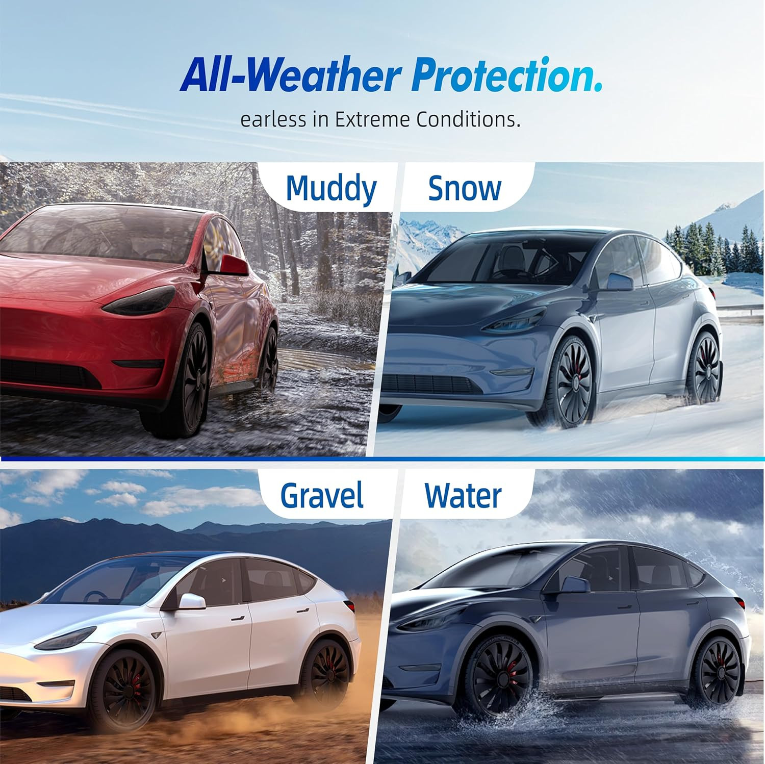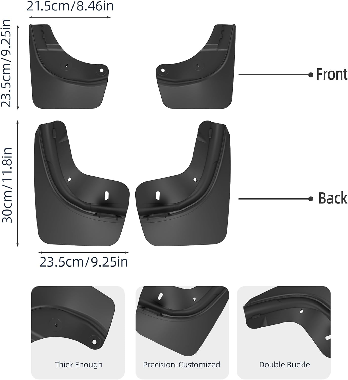 Custom Fit for Tesla Model Y (2020-2025): Not compatible with New Model Y Refresh Juniper! Uses 3D laser scanning of the original wheels to ensure the fenders and body holes are precisely calibrated. Installed using the original hole locations with no gaps for a perfect fit. Gives your car reliable protection without causing any damage, while, at the same time, maintaining a streamlined aerodynamic look Durability: Built from PP+TPE composite materials, these Tesla Model Y mud flaps 2025 upgraded provide exceptional impact resistance and flexibility. They absorb shocks from road debris and withstand gravel, heavy rain, and off-road conditions without cracking or warping. Designed for long-lasting durability so you can drive with confidence in any environment 3-Step Easy Installation & No Extra Tools Needed: No drilling, no hassle! These Model Y mud flaps use Tesla's factory mounting points for a 100% drill-free installation. With a quick 3-step process—Snap, Insert, and Press, you can install them effortlessly. This set Includes all necessary mounting hardware and an easy-to-follow guide, so you don't have to buy anything extra. Save time, effort, and money with this simple installation All-Weather Protection: Built to withstand scorching heat, freezing cold, heavy rain, and snow, these Tesla Model Y fender guards remain intact without cracking, breaking, or fading. Their durable, weather-resistant design effectively shields your paint from mud, road salt, and debris, preventing scratches and rust. No matter the season or road conditions, they provide reliable, year-round protection, keeping your Tesla cleaner and safer 24/7 Customer Support: Your purchase is backed by a 12-month warranty and 24/7 customer service. Have questions? Need help? We’re always here for you. Drive with peace of mind—your Tesla deserves the best What's in the box Front Mud Flaps ×2 Rear Mud Flaps ×2 Mounting Screws ×10 (2 for Replacement) Hex Key ×1 Flathead Screwdriver ×1 On May 13, 2025 at 05:38:48 PDT, seller added the following information:.dc_tracker_img .dc_tracker_img:last-of-type p:empty+hr hr+span.ebay,hr+*>span.ebay