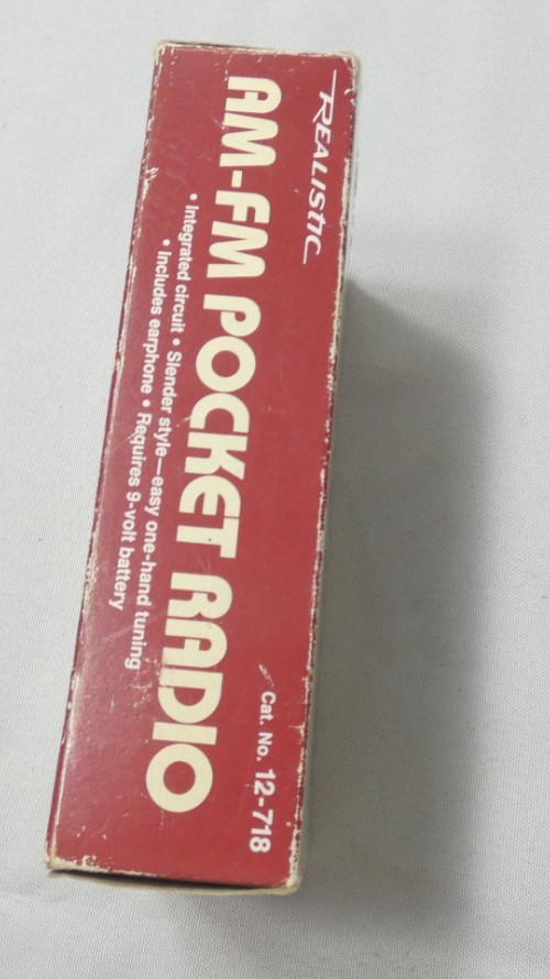 Up for sale is a Vintage Radio Shack Realistic 12-718 AM/FM Transistor Radio with Box. Tested and Working. Clean battery box. Some static when adjusting dials. Box show shelf wear. Please see photos for condition details. M124See pictures for detailed condition description. Please view all pictures carefully before bidding or buying.Please feel free to contact us with any questions. We are usually available to answer questions Monday through Friday.Some items may be disassembled for ease of shipping. Items may be shipped in recycled packaging.Payment: Payments are expected within 2 days of sale and immediately with Buy It Now. Florida residents pay 7.0% sales tax.Delivery Time: We ship upon receiving payment. Our commitment is to ship the next business day after payment is received. We ship daily Monday-Friday except holidays.Additional Shipping Charges and Info: Listed shipping rate applies to delivery within the continental United States only. On any international orders the buyer is fully responsible for custom fees and duties, please do not ask us to alter Customs forms. These fees are not included in the purchase price or shipping charges. We ship from multiple locations. If local pickup is offered, a handling charge will be added to the invoice.We do not ship to P.O. Boxes, please be sure to include a street address. We only ship to verified addresses unless arrangements are made prior to sale.Communication: Excellent Communication and Customer Service is our goal! We will attempt to answer any questions and contact you when your product ships. Our goal is 100% customer satisfaction. Return & Refund Policy: Your satisfaction is important to us! If you are not satisfied with your purchase and wish to make a return, please notify us within 30 days of receiving the item(s). All returned items must be in their original condition. Refunds will be for the original price paid, less shipping and handling. We have been providing great service to our customers since 1975. Buy with confidence!