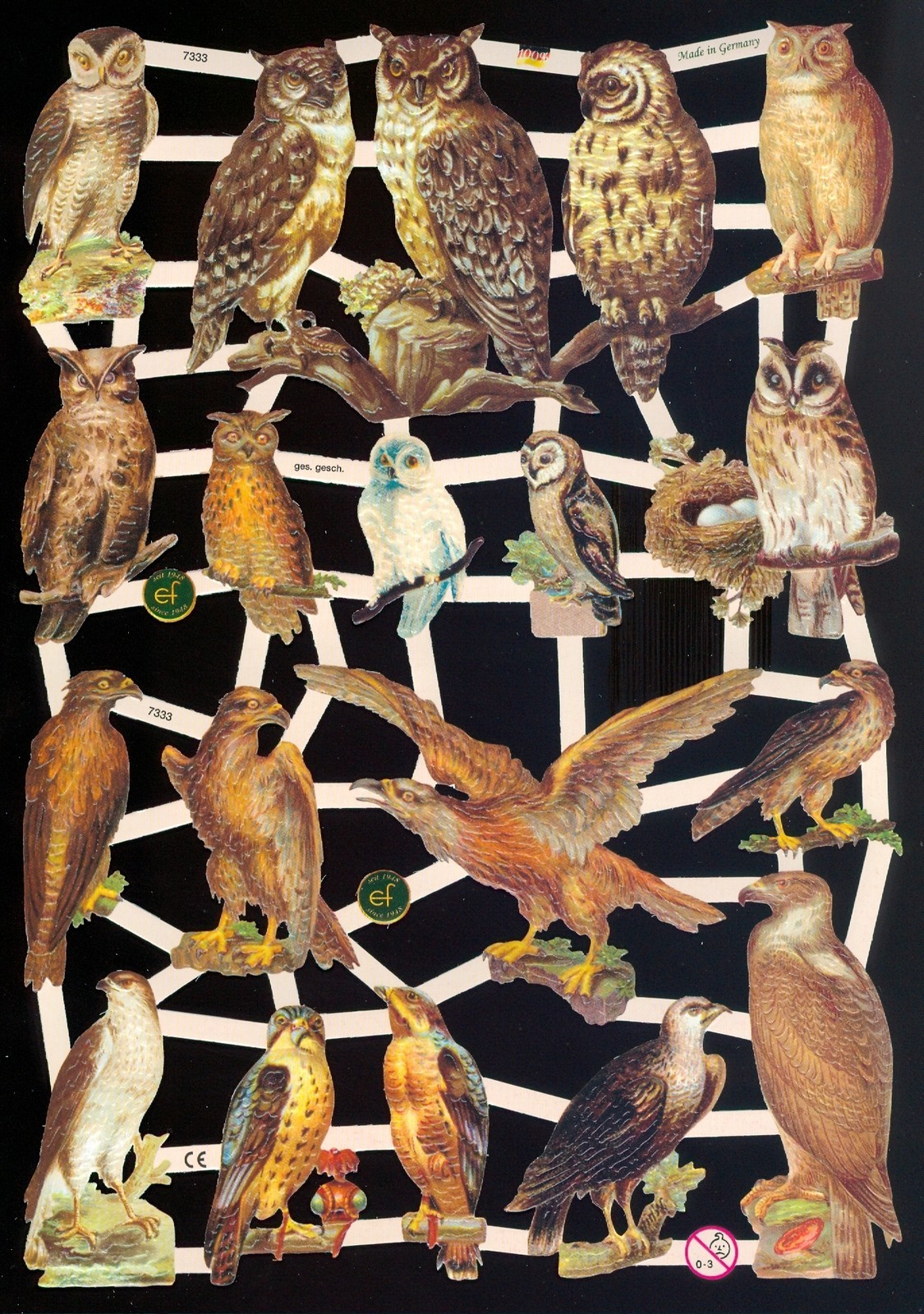 One sheet of Mixed Owls & Eagles, printed in Germany ef 7333. New and Unused, The sheet measures approximately 6-1/2'' x 9-1/2'' . These paper trims are great for Scrapbooking, old fashion Decorations, and many other craft projects. Multiple items may be combined for a discount on shipping. e-bay automatically charges cents for each additional item. To get the multiple item shipping discount; Please place the items you wish to order in a cart and you will see your total with the combined shipping discount Check out my other items for more German Dresden Diecut and Pressed paper trims. Please E-mail me with any questions.