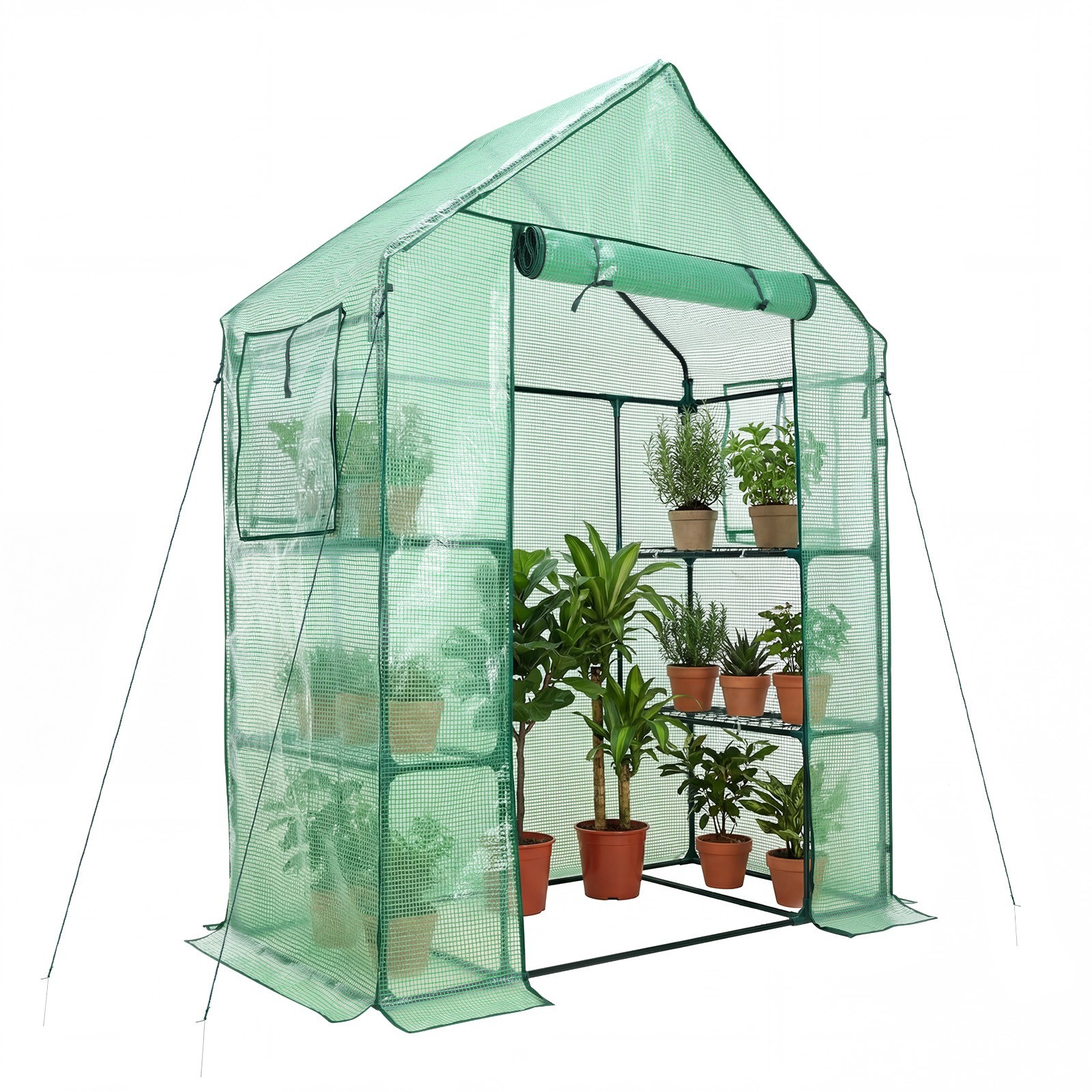 Portable Mini Walk-in Greenhouse 3 Tiers 6 Shelves Outdoor Green House PE Cover