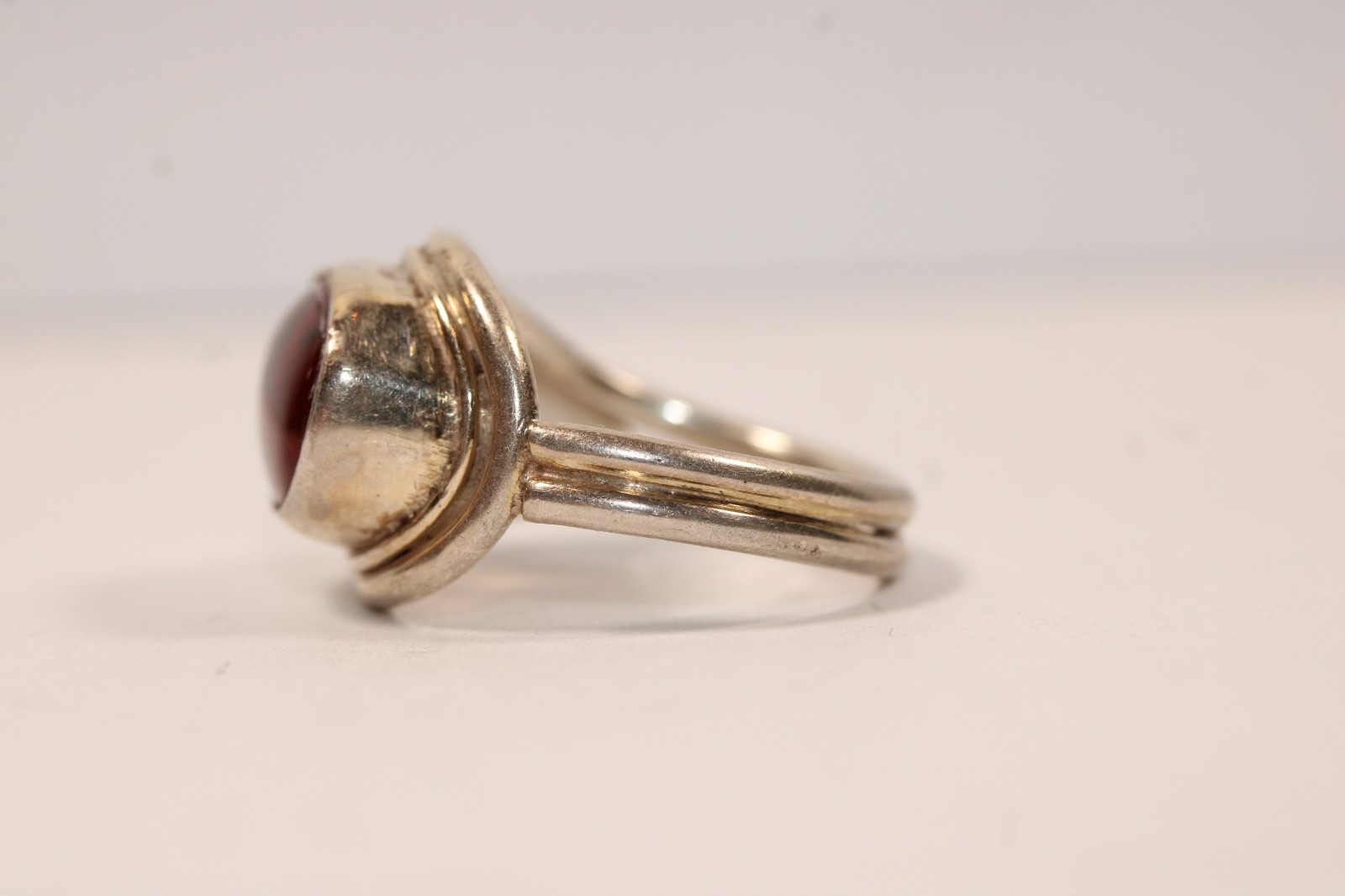 Vintage 925 Sterling Silver Baltic Amber Ring Detailed Heart Side Size 8