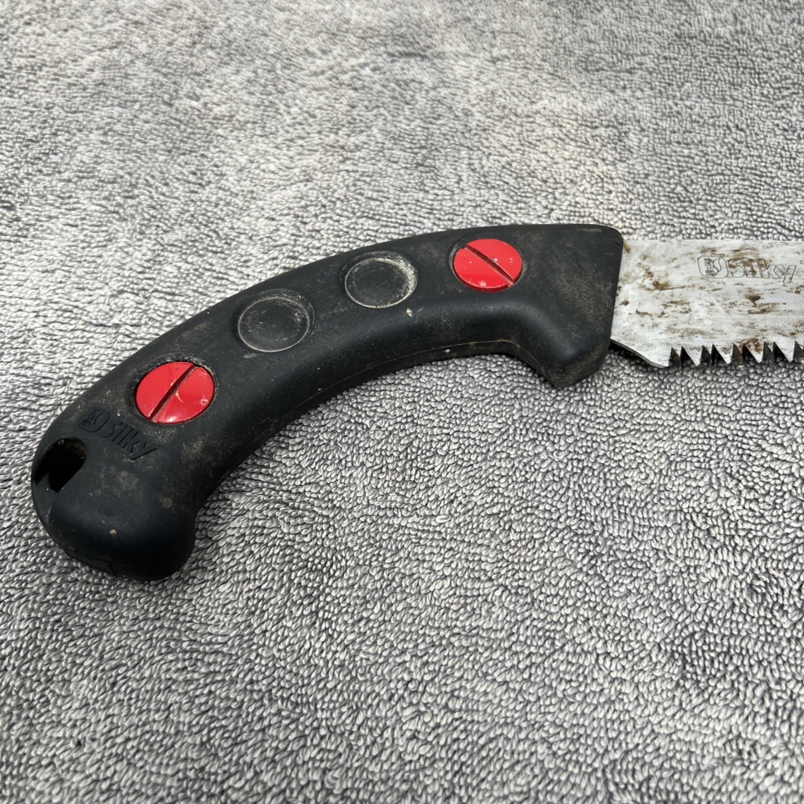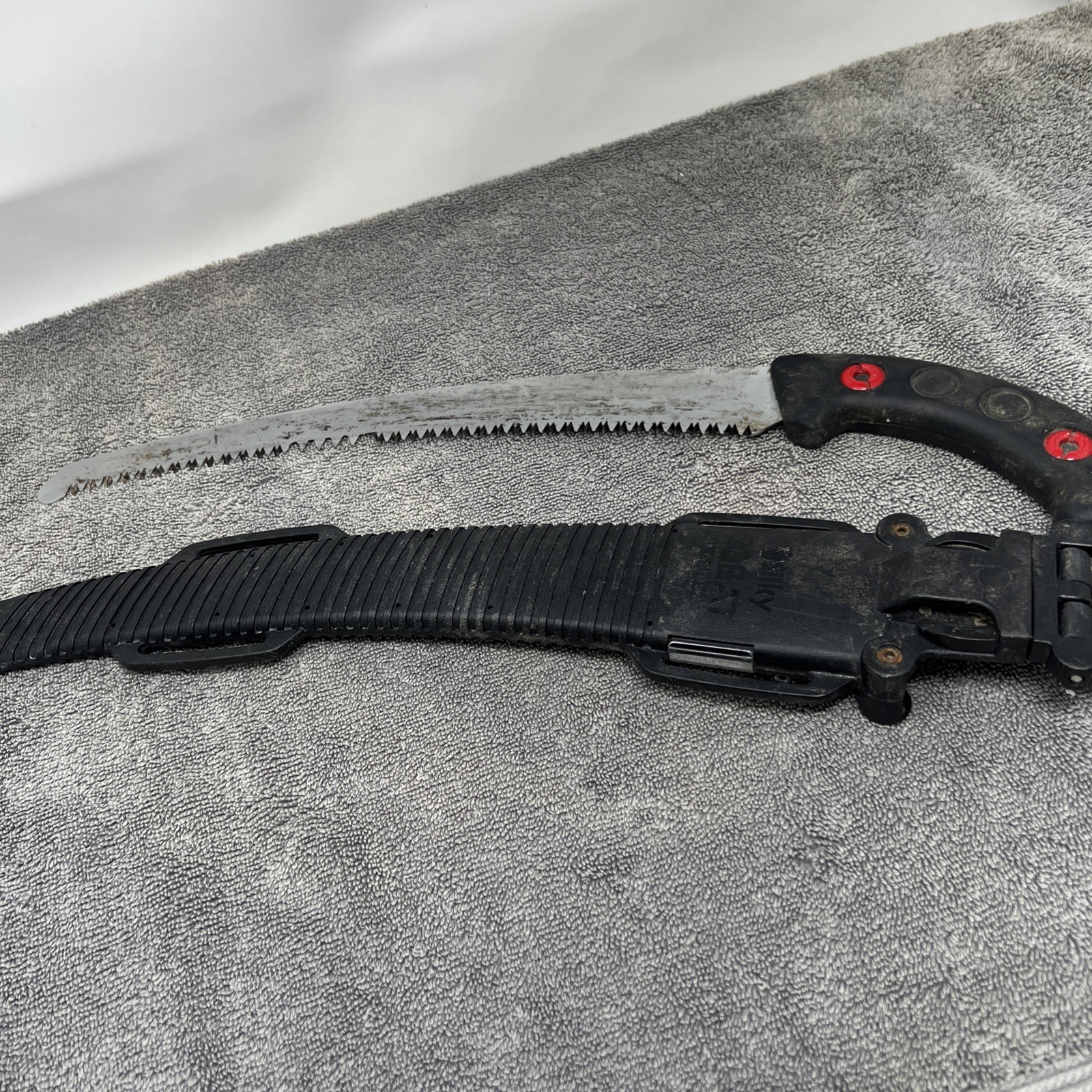Item is preowned and has signs of use, pls see pictures for details. Note the broken saw tooth in pics. Item is otherwise in good working order.Feel free to message with any questions prior to purchase.Thanks for stopping in!The Silky Zübat 330(7.5) Professional Curved Hand Saw is a high-quality and durable tool perfect for hunting and outdoor activities. Made in Japan, the saw features a steel blade with a length of 13 inches and a handle made of rubber for comfortable use. The overall length of the saw is 19 inches, making it easy to handle and maneuver. This sleek black saw is designed for precision cutting and is a reliable companion for any outdoor adventure.