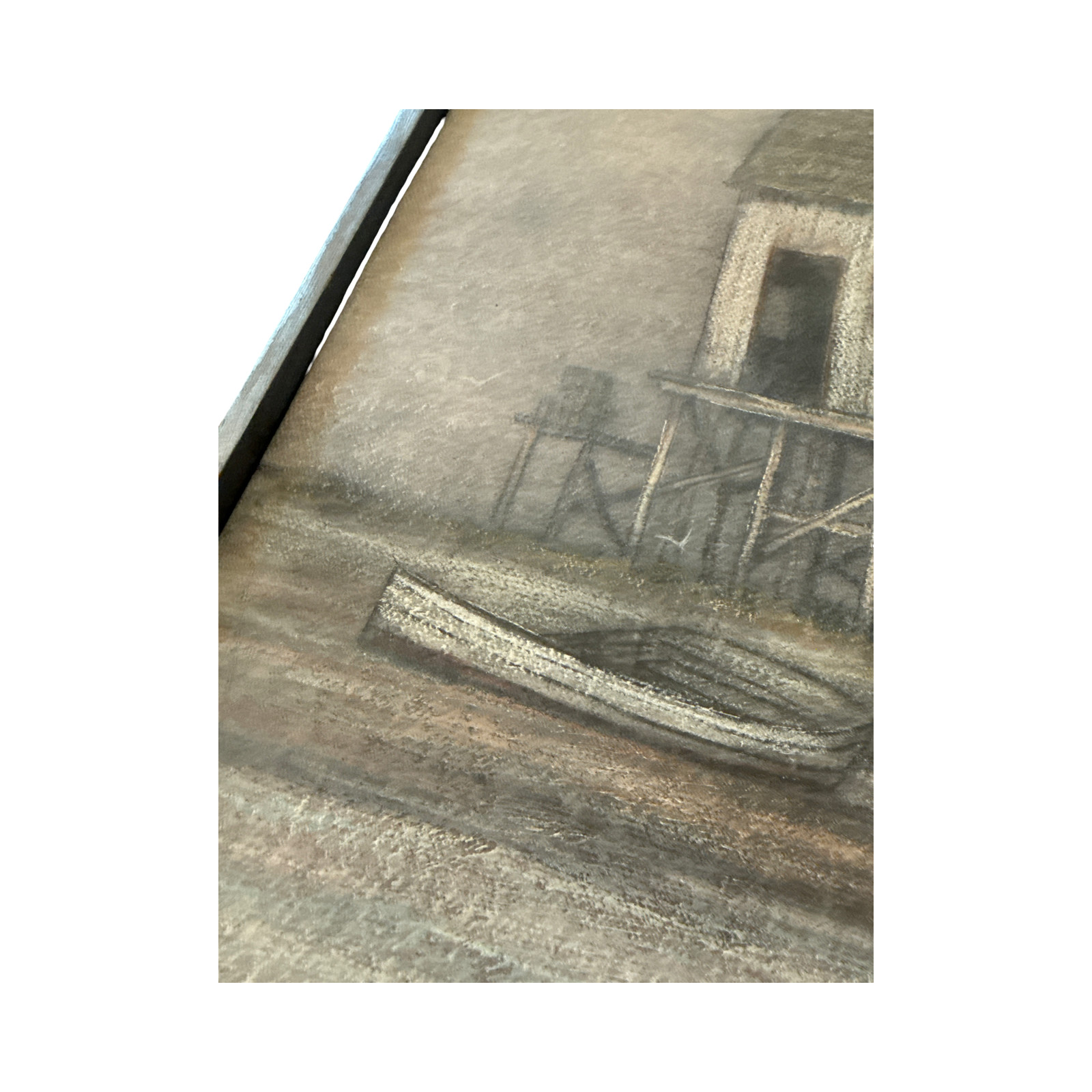 Overview: This 1975 original oil on canvas by the celebrated American artist Henry Parker (1938–2021) is a prime example of his "Misty Morning" series. Parker, who refined his technique in England before receiving a scholarship to the University of Miami’s Lowe Gallery, was renowned for his "sublime realism." This atmospheric work captures a serene, foggy coastal scene featuring a weathered stilt house and a lone rowboat, rendered in his signature soft-focus style.DetailsArtist: Henry Parker (American, 1938–2021) Signature: Signed "Henry Parker 75" (Lower Right) Medium: Oil on Canvas (Fine-Layer Glazing Technique) Frame Dimensions: Approx. 17" x 8.25" x 2" Image Dimensions: Approx. 16.5" x 7.25"3. Condition ReportCondition: This painting is in Excellent Vintage Condition. The artwork surface is exceptionally clean with no visible craquelure or paint loss. The original mid-century wood frame is structurally sound with only light surface scuffs consistent with its 50-year age. The reverse shows natural age-toning. Please see photos.