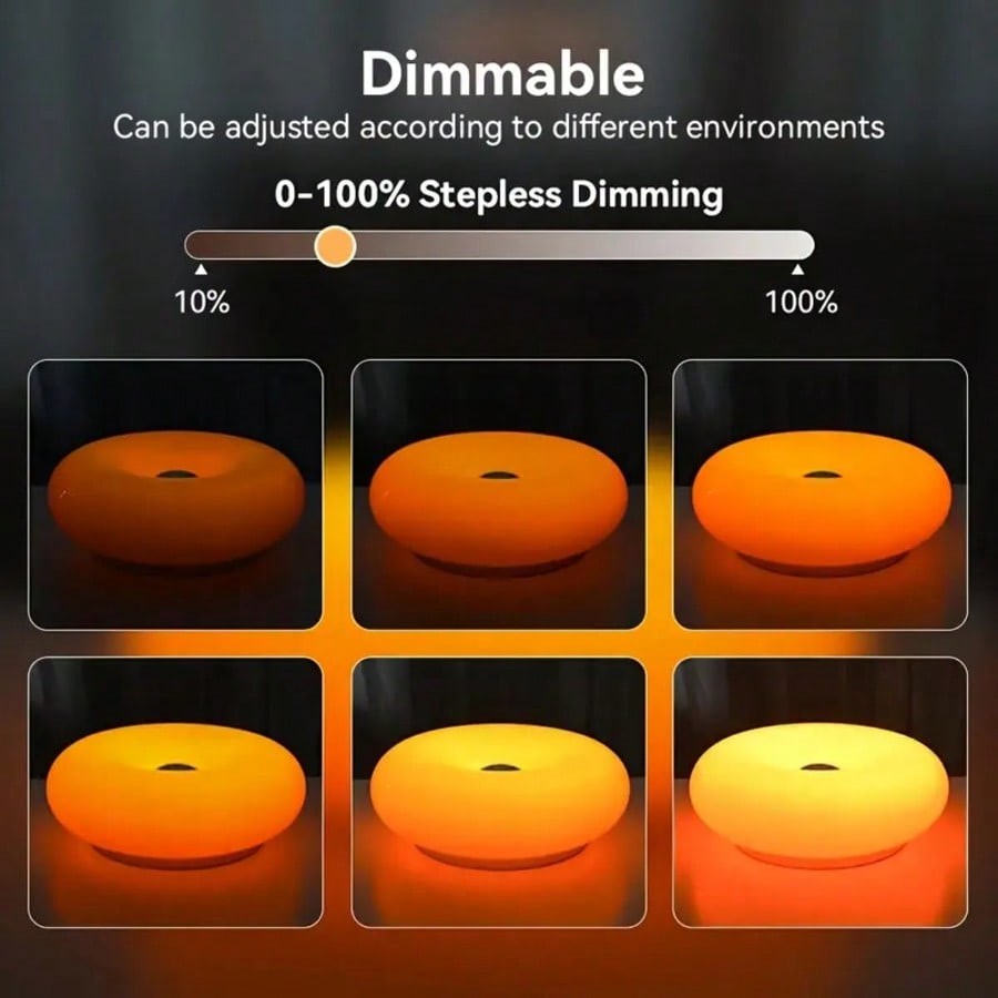 Modern Fashionable Donut-Shaped Atmosphere Lamp, Rechargeable, 3-Color Dimming..