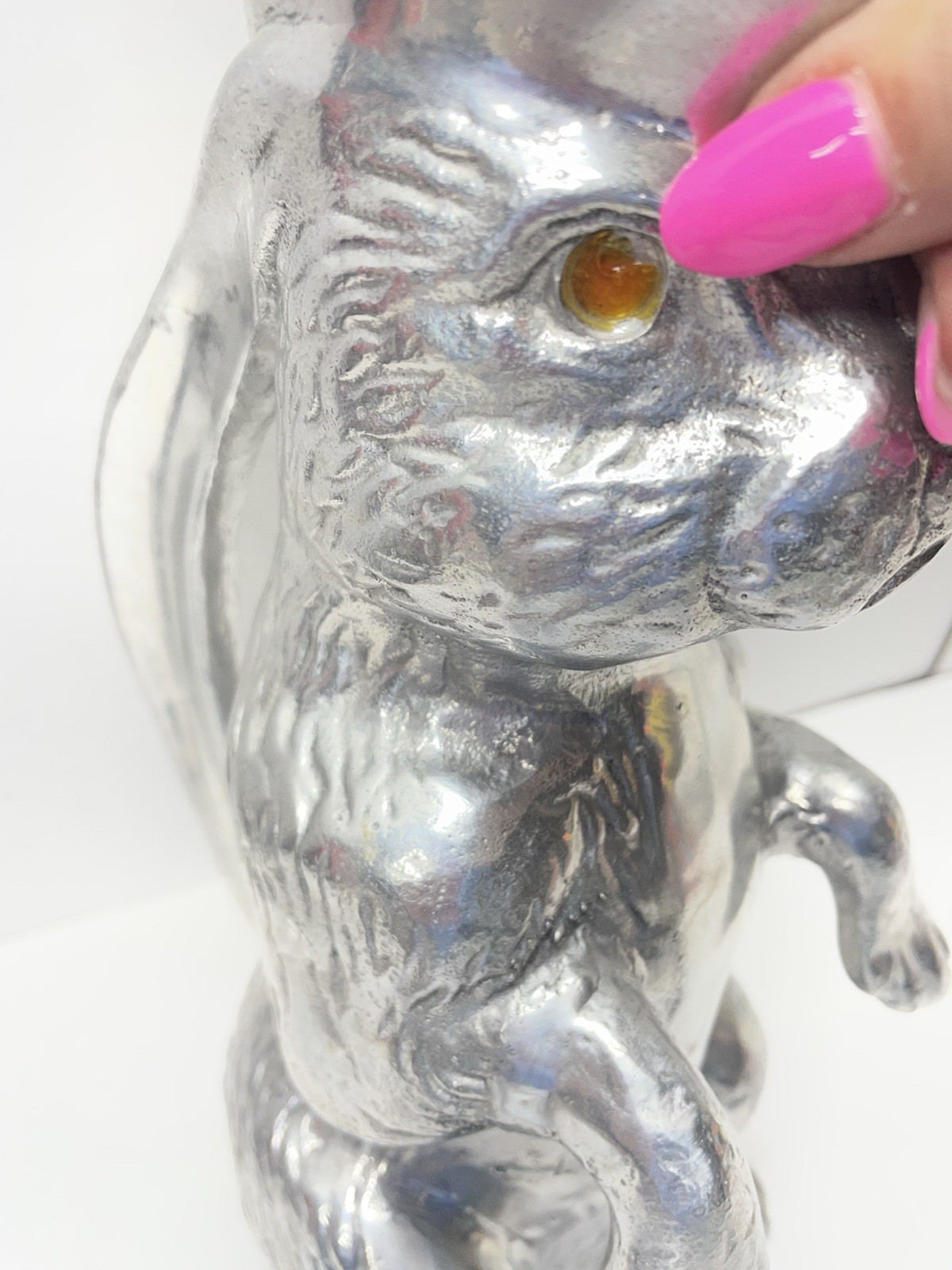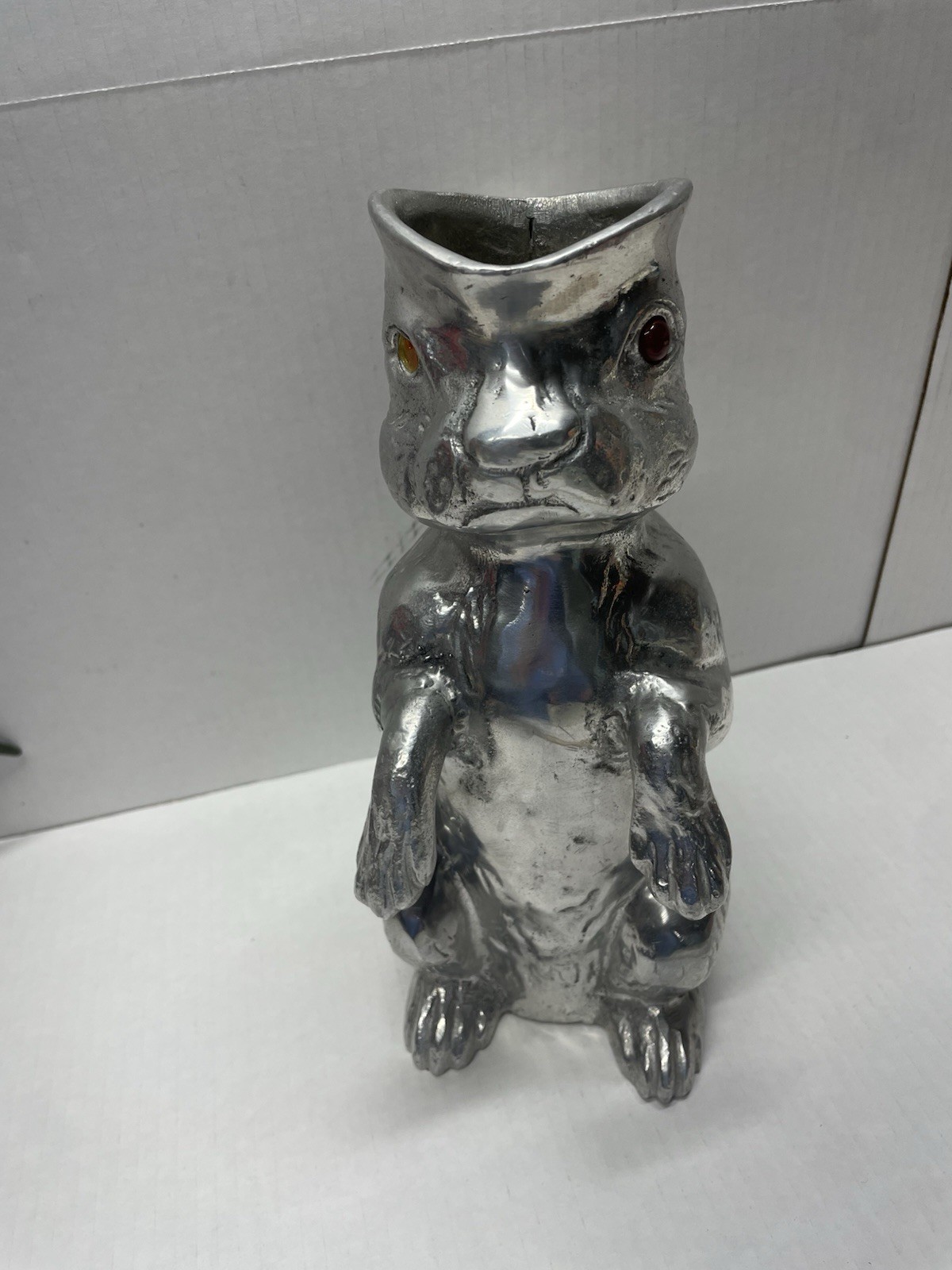 Arthur Court vintage rabbit pitcher dated 1979, featuring an 11-inch aluminum bunny design. This collectible pitcher is listed as used; check the listing for details on any wear, marks, or condition notes. A practical display piece for Arthur Court fans and rabbit-themed decor, suitable for serving or shelf styling depending on your preference. Free shipping is included with purchase; check the listing for details on handling time, carrier, and any shipping restrictions or returns.