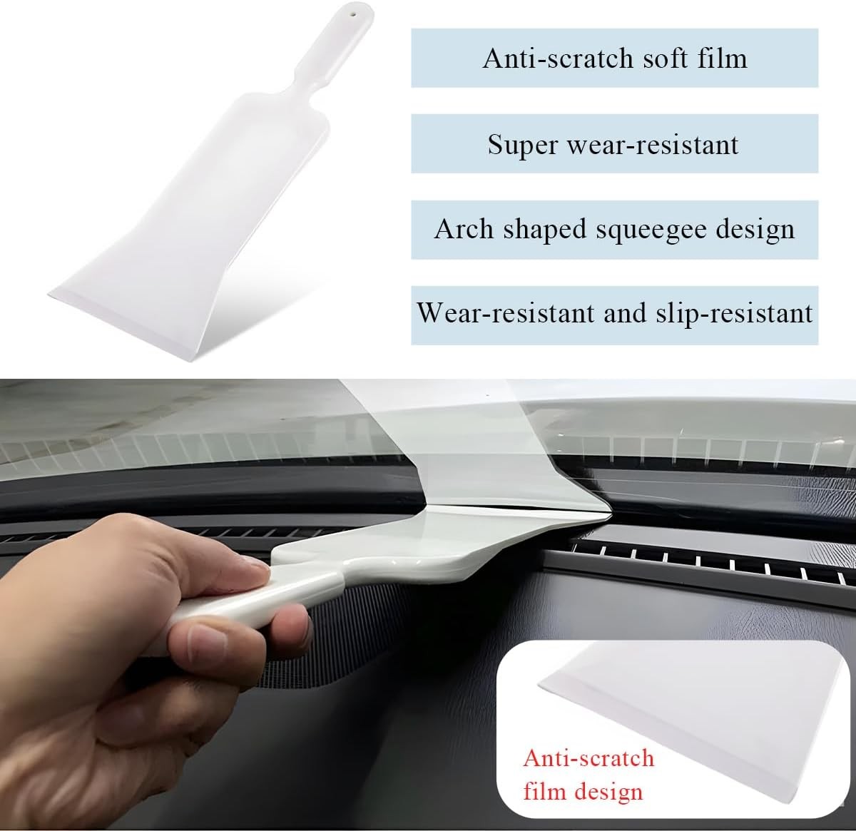 Car Bulldozer Squeegee, Flat Long Handle Window Tint Film Installation Tools, Bulldozer Scraper for Car Front and Rear Windows Glass Cleaning, Universal Car AccessoriesColor: BulldozerAbout this item 【Professional Cleaner】: Our squeegee offers an excellent cleaning effect and can easily reach difficult body parts. It is versatile for cleaning dust, water, and dirt on car windows and is also suitable for window tinting, making it a multifunctional cleaning tool that leaves your car windows spotless. 【User Friendly】: Designed ergonomically with a curved handle for a comfortable grip, it requires minimal effort to use, preventing hand fatigue during extended cleaning sessions. This makes cleaning car windows quicker and easier. 【Trustworthy Quality】: Constructed from high-quality plastic material, it is environmentally friendly and free from unpleasant odors. With great flexibility and durability, it resists breaking during use. The smooth surface allows for detailed cleaning without damaging or scratching windows. 【Package Includes】: The set includes 1 bulldozer squeegee or 1 long handle paddle squeegee, or a combination of both. The long handle paddle squeegee comes with 1 cleaning pad to meet your cleaning needs. Order according to your specific requirements. 【Wide Applicability】: These wipers can be used widely beyond cars, including for home cleaning and auto glass tinting film installation. They are effective for cleaning smooth surfaces such as bathrooms, mirrors, glass doors, and floors, helping you save on cleaning expenses. Dimensions: 15.2"W x 5.94"H