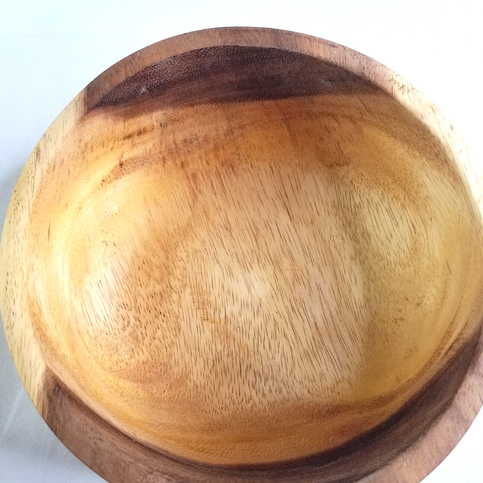 Carved Wood Round Two Tone Bowl 10.5" MCM Specs