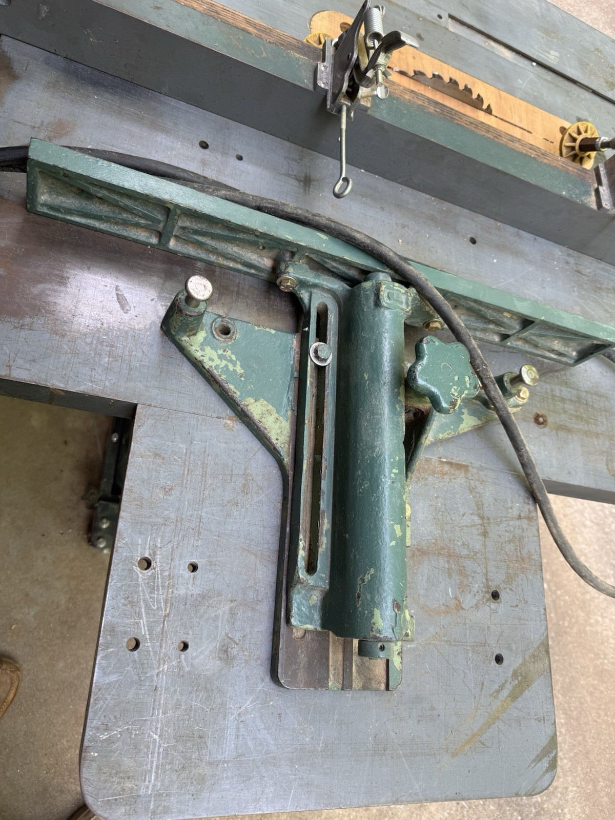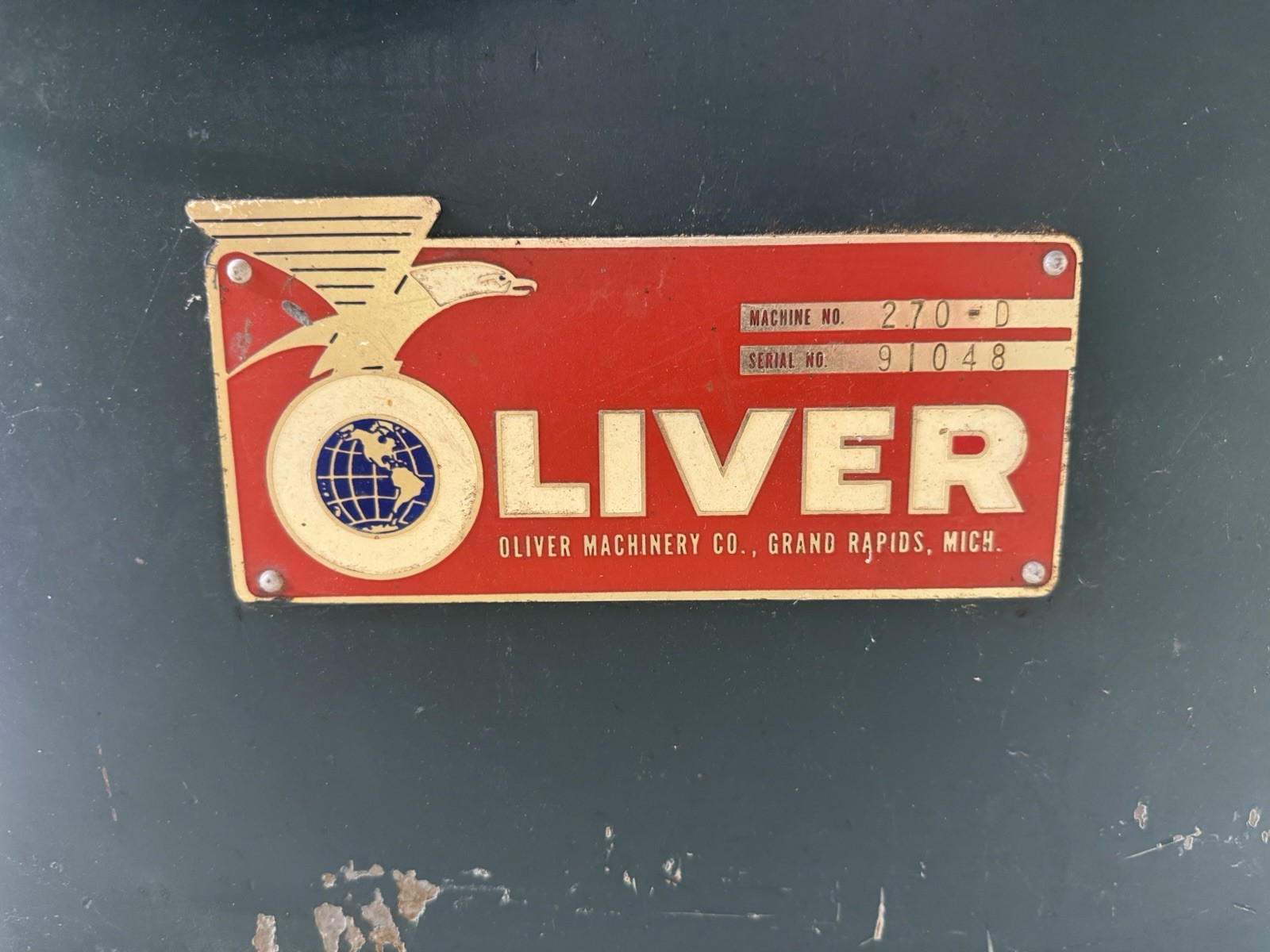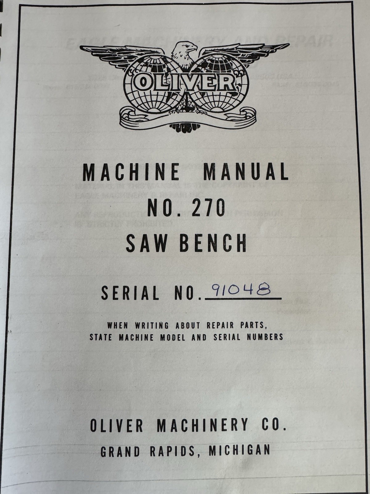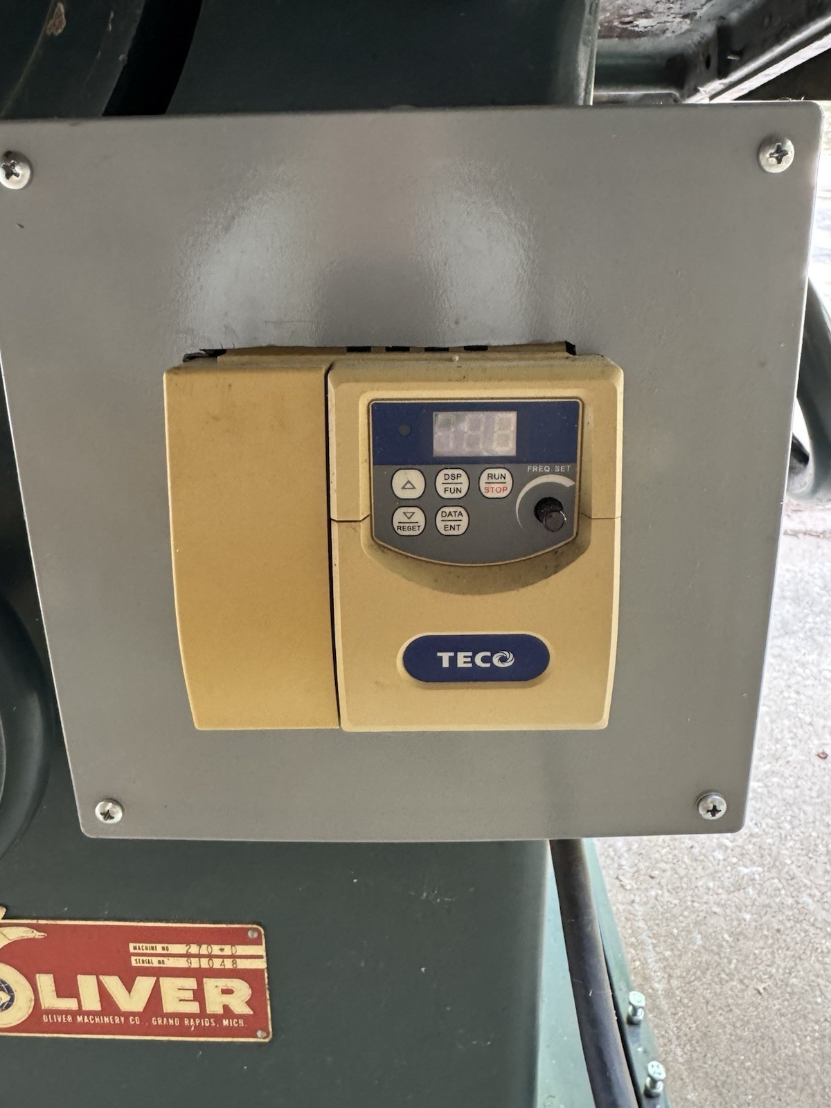 The Oliver 270-D is a three hp, 220 Volt, 14 inch table saw. A Teca VFD powers the 3 phase motor on 220 single phase. Included is a lightly used forest woodworker blade 14 inch, a 15 inch Olsen crosscut blade, and a 12 inch Freud Rip blade. There are two rip fences included a J-style fence and a Bar fence with an Oak face and anti kick back rollers. The saw sits on a Shop Fox super heavy duty mobile base. The saw weighs around 1400lbs. The saw comes with a manual and a copy of the original bill of sale from 1960. I can provide a video of the saw running if needed. Freight price is an estimate, your location will determine exacting costs.