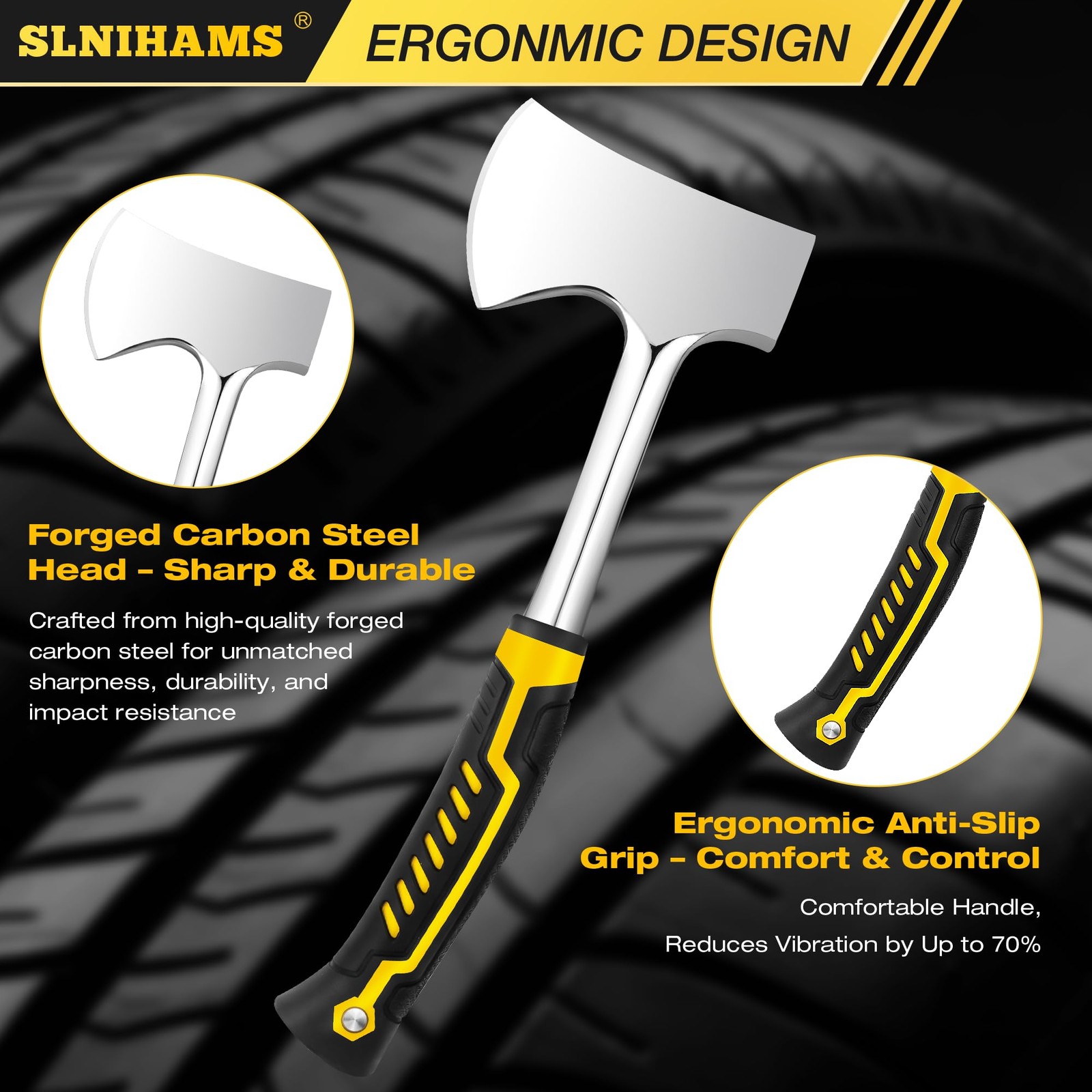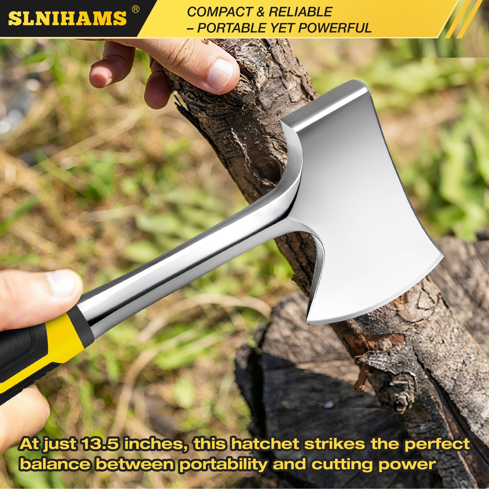 SLNIHAMS 13.5" Camping Hatchet, Forged Carbon Steel Axe with Ergonomic metal