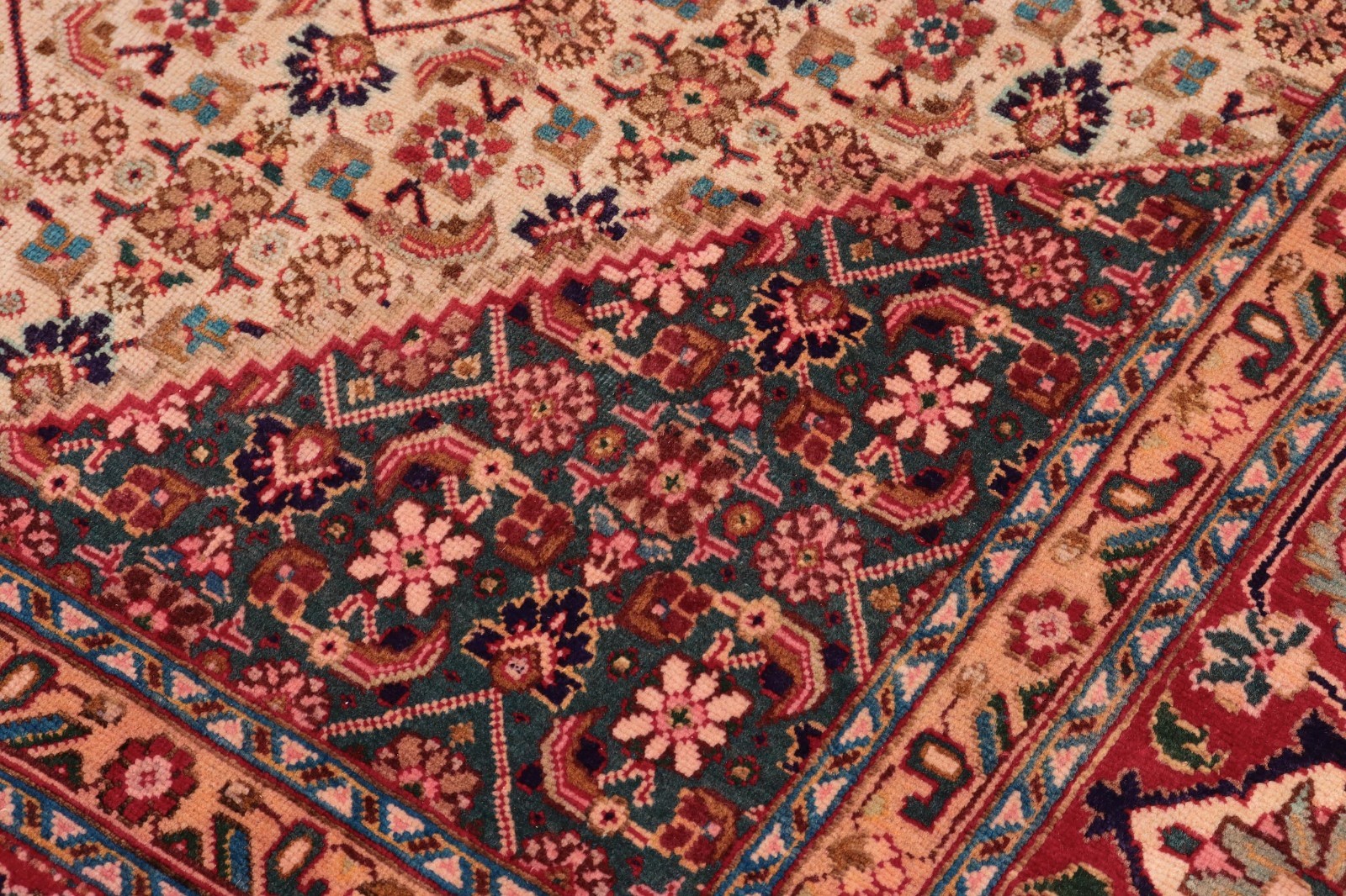 color and complex layering of patterns.Construction: Genuine Hand-Knotted wool, signifying authentic craftsmanship and a durable, substantial pile built for lasting value.Material: Crafted from 100% Premium Wool, providing a luxurious feel and natural resilience.Intricate Medallion Pattern: The field is filled with a dense array of stylized floral and paisley (boteh) motifs, centered around a beautifully detailed, multi-layered medallion that features Green, Blue, and Ivory tones.Visual Complexity: The rug uses a wide spectrum of colors to fill the traditional motifs, resulting in a highly dynamic and visually engaging texture.Detailed Borders: The rug is framed by ornate borders, predominantly in dark tones, which contrast sharply with the vibrant field.The colors are bold, numerous, and harmoniously balanced for a sophisticated, celebratory look.ColorDescriptionAesthetic RoleField ColorBlue The dominant, deep blue background color.Medallion TonesHunter Green, Deep Red, & IvoryProvides a unique, cool, and intricate focal point in the center.Contrast ColorDeep Navy Blue / Dark BurgundyUsed in the outer borders and deep accents for strong definition.AccentsGold, Soft Pink, & PeachHighlights the extensive floral and paisley motifs.FeatureDetailSize9 feet 11 inches x 12 feet 6 inches ShapeRectangularMaterial100% Wool PileConstructionHand-KnottedCondition: This rug is in good condition, with some wear in the rug consistent with its age and use. Care: Professionally clean as needed. Regular vacuuming (without a beater bar) is recommended.Our Quality Guarantee & PoliciesWe only deal with high-quality, hand-selected rugs and stand behind every single piece that we sell. Your satisfaction is our priority.Care: Vacuum regularly. Spot clean with a mild detergent and water. Professional cleaning recommended as needed.Note on Color: We have tried our best to capture the colors accurately in natural light. Please remember that colors may vary slightly depending on your monitor settings.Shipping: We usually ship within 2-3 business days. The rug will be carefully rolled, wrapped, and protected for secure transit. We only ship using UPS and all items are fully insured. We currently only ship in the 48 CONTIGUOUS United States.