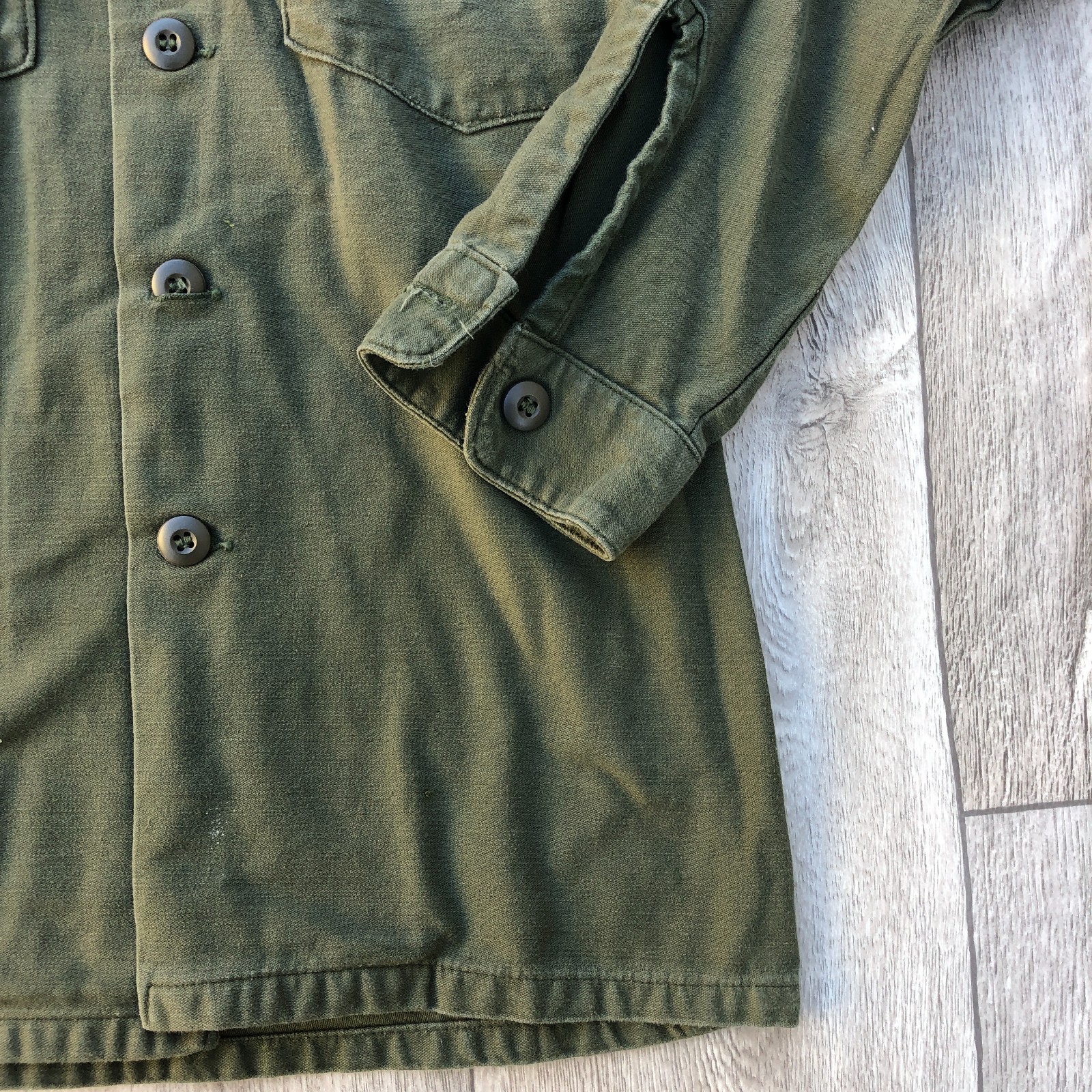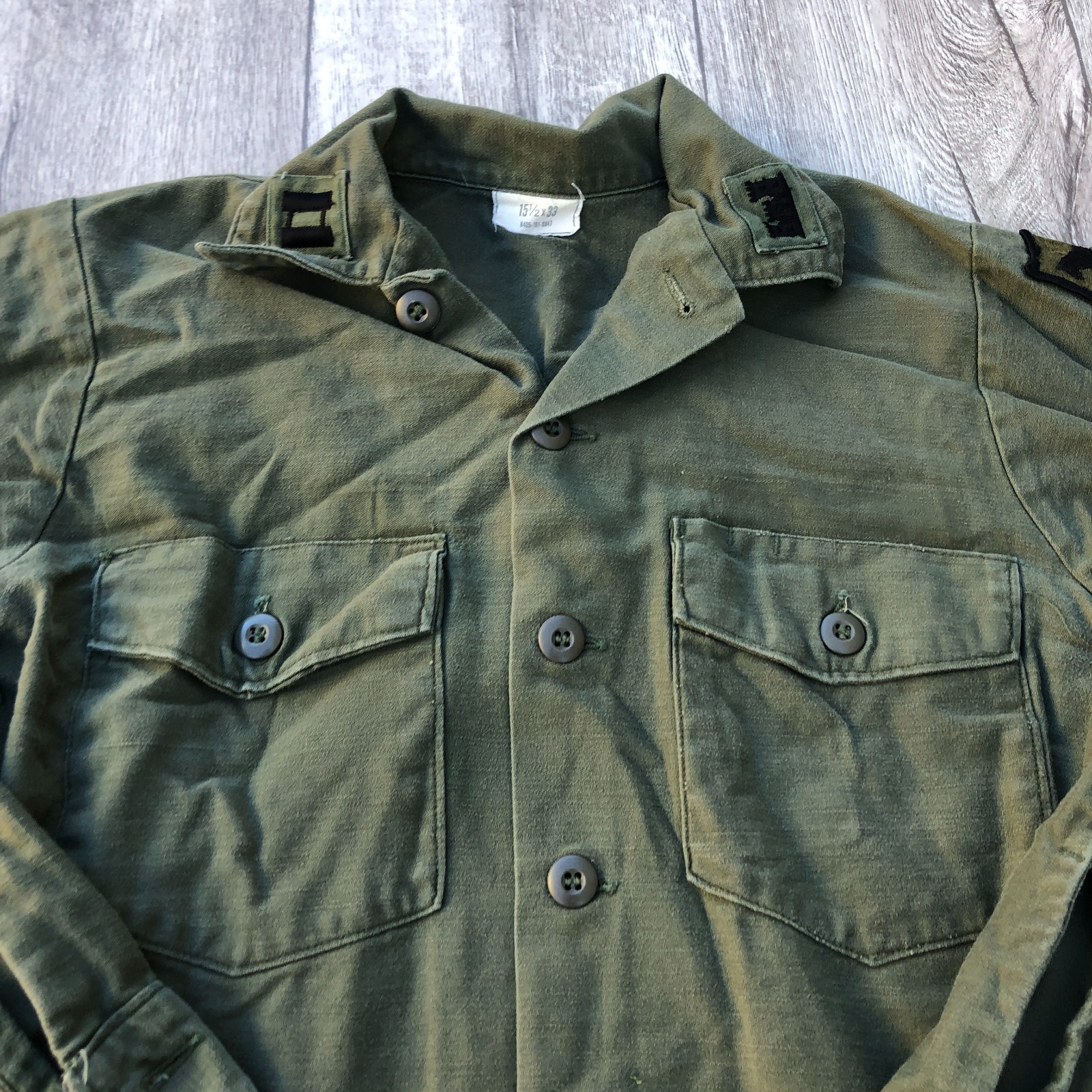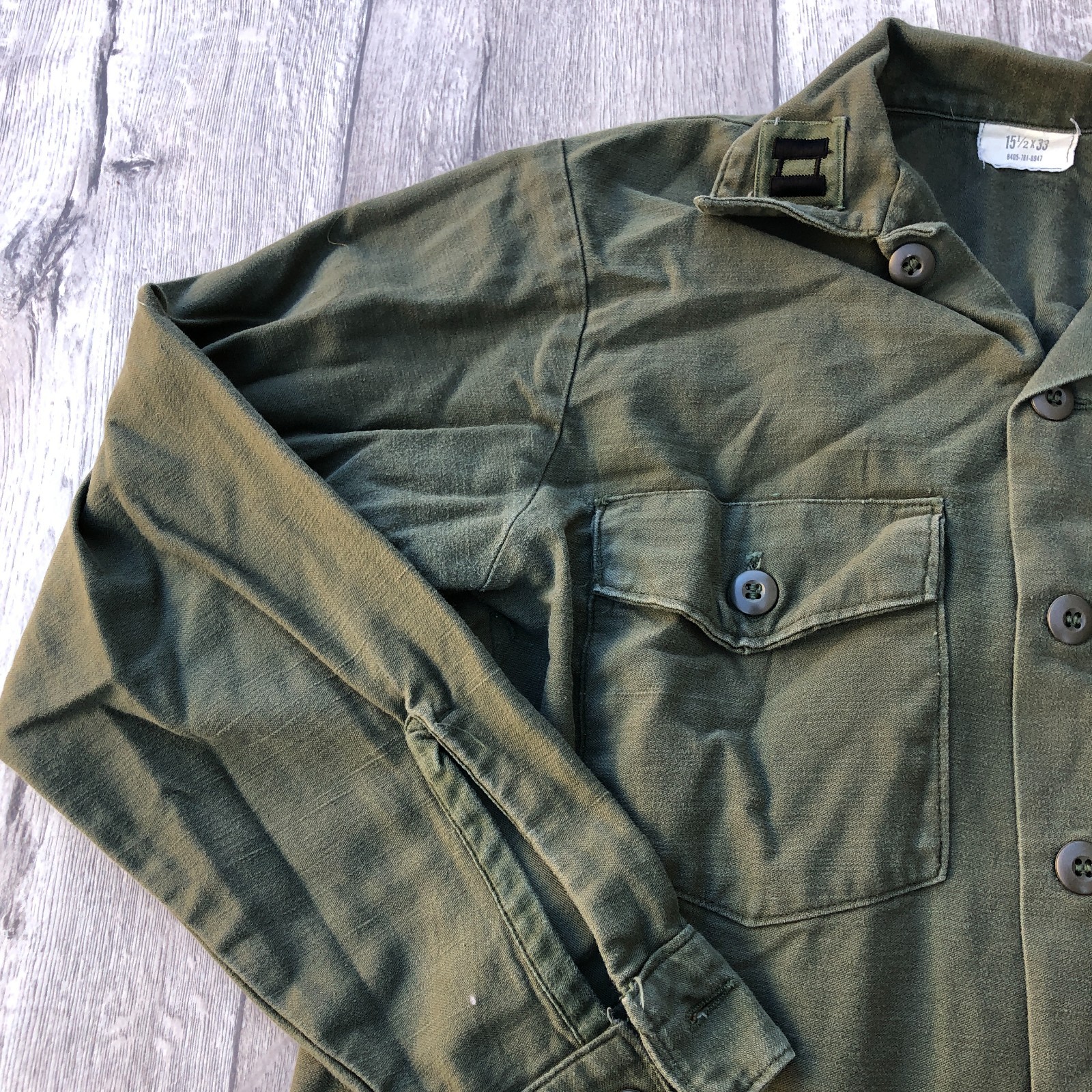 Vintage US Army Shirt Mens 1973 Vietnam Cotton Sateen OG107 15.5 x 33Pit to pit 22"Length 29"