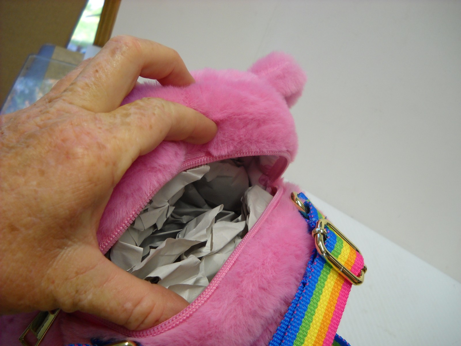Pink Plush Care Bears Child's Purse Cherry Rainbow Strap Crossbody NWT New with tags. Comes with shoulder strap. ********************Measures 7" x 7" x 3-1/2".Great gift idea for any little girl in your life. Add a pop of