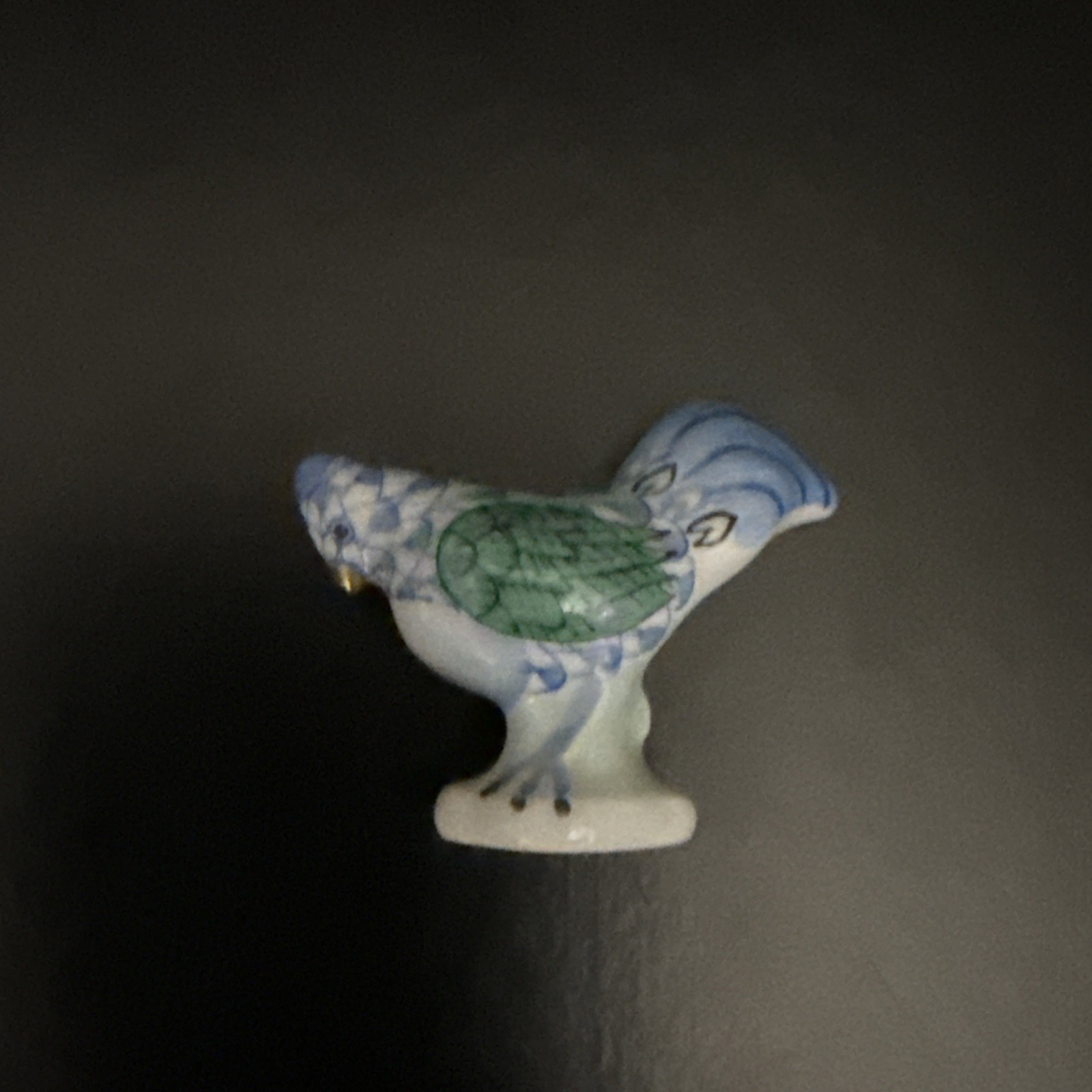Vintage Herend Hungary Porcelain Chick Chicken Blue Fishnet Gold Trim 15506
