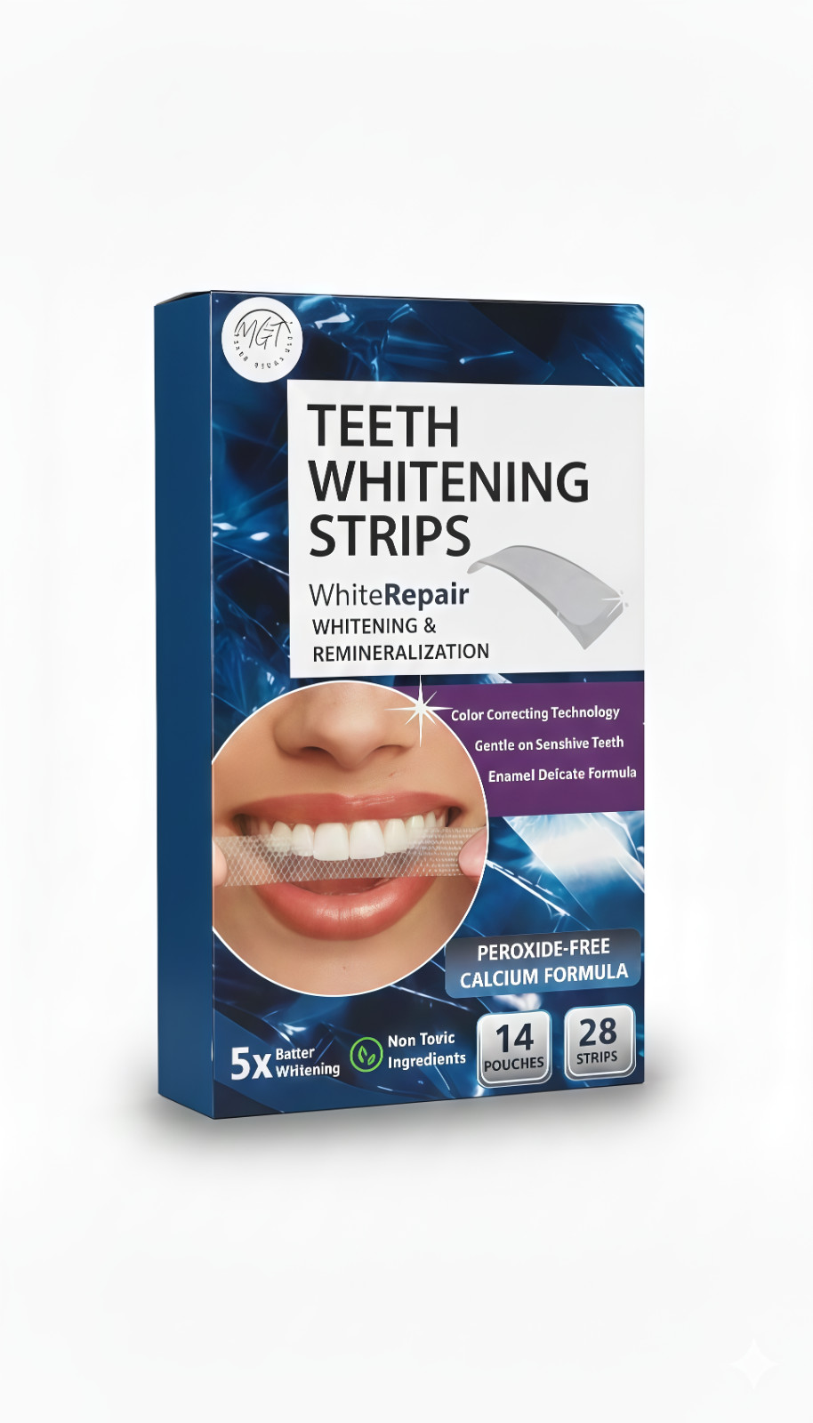Support a brighter-looking smile with these Teeth Whitening Strips, designed for gentle and convenient at-home whitening. Each box includes 21 treatments (42 strips) to help reduce the appearance of everyday surface stains with regular use.The peroxide-free formula is developed for users who prefer a milder whitening option. Designed to be enamel-safe and low-sensitivity, the strips provide a comfortable whitening experience without harsh ingredients. The formula is dentist-approved and intended for routine cosmetic oral care.Ultra-thin, flexible strips conform to the shape of your teeth for even coverage and a secure fit. The mess-free design makes them easy to use at home or on the go—no trays, lights, or complicated steps required.Ideal for maintaining a clean, refreshed smile, these whitening strips fit easily into your daily oral care routine.