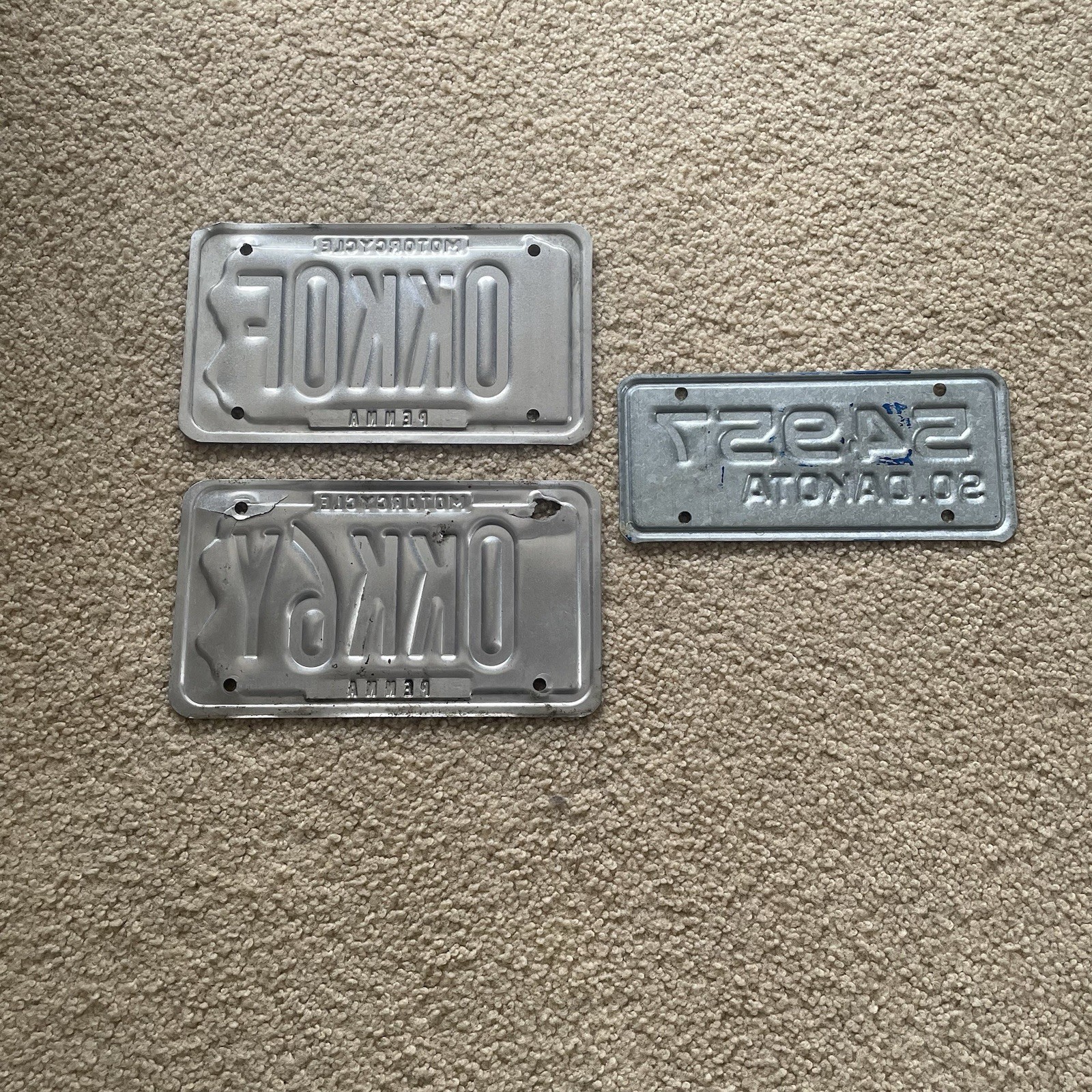 3 Motorcycle Vintage License Plates-South Dakota-Pennsylvania (2)