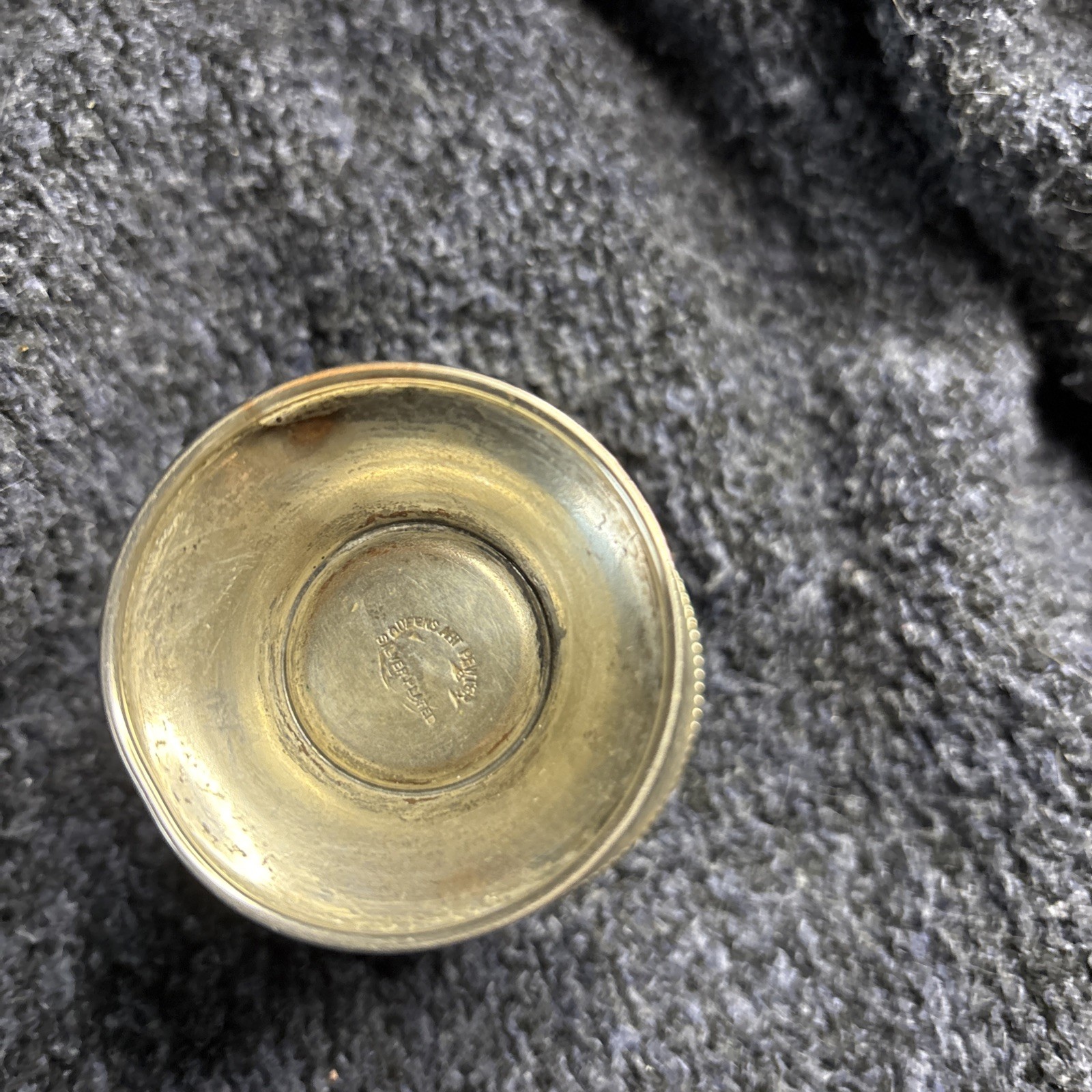 Selling:: QUEENS ART vintage pewter/silver plated beaded urn style toothpick holder. Measures about 2.5-3 in tall ….