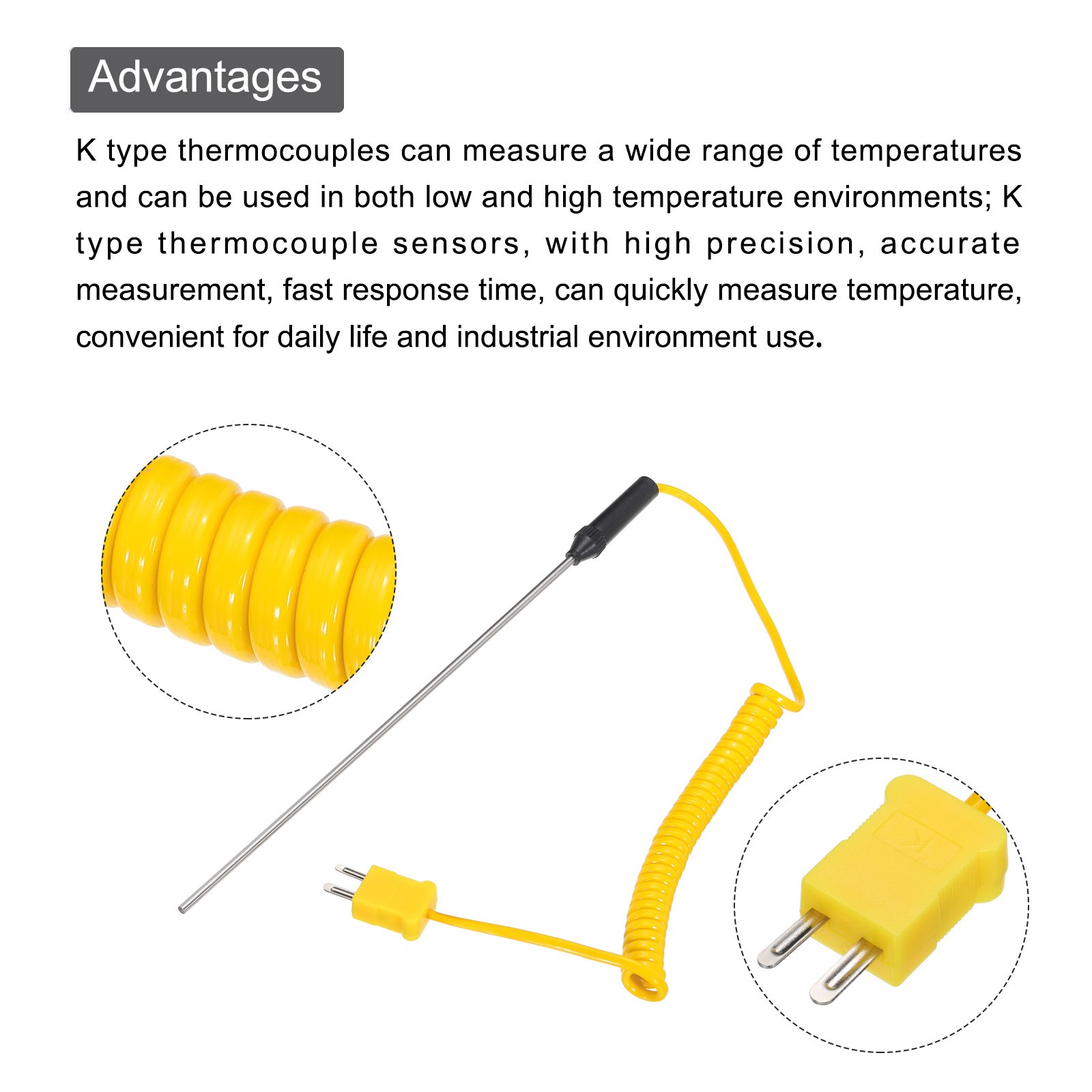 specifications; 2. Installed in various temperature measuring instruments and equipment; 3. Measure temperatureWhat should I notice?Temperature range to be measured shall be considered when selecting thermocouple Hot Item PaymentWe accept eBay payment.Please do not email us to ask for other payment option.We appreciate prompt payment and look forward to your business in the future. Unpaid item will be filed without receiving payment in 7 days from listing ended.ShippingUsually we ship your order out within 24 hours in business day.For shipping and handling charges (S&H) for specific item, please refer to the item listing page for more details.Please make sure your shipping address is correct. We are not responsible for any loss in transit if a wrong address is provided.Return PolicyReturns for exchange are permitted and must be initiated by the buyer within 30 days upon receipt. If you would like to return your product(s) for repair / replacement / refund, please kindly contact our customer service representatives via email for an authorized RMA number. Your returned product(s) will not be processed without a completed RMA.About UsOur US warehouse allows us to ship you the best products quickly and accurately. We are continually expanding our product selection to better serve your need.We look forward to providing the best sevice to you - our dear customers, so take a look around our store and find the product that you want. You can put your trust in us!If you need any help or have any suggestions, please don't hesititate to contact us anytime , we will reply you within 24 hours and try the best to help you.