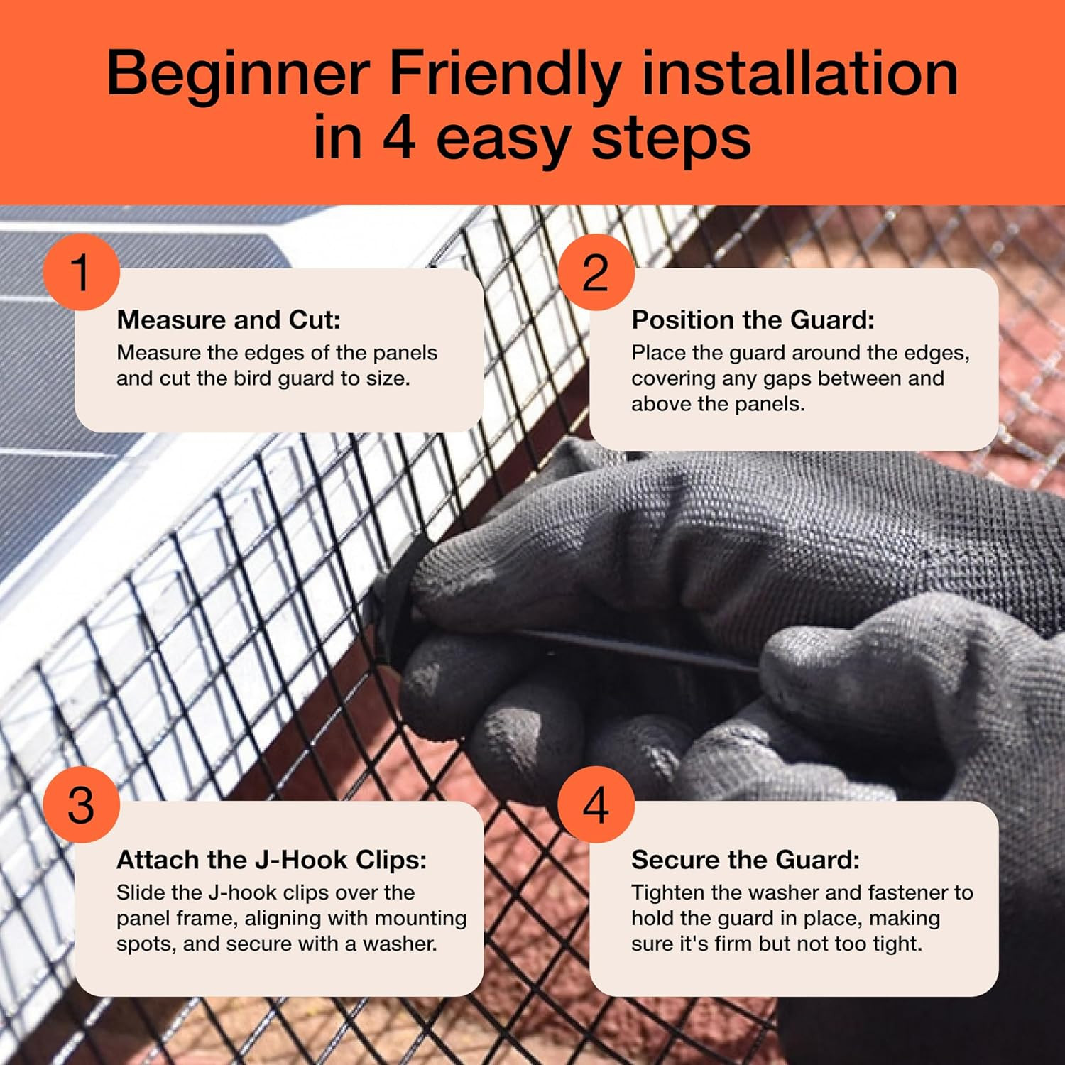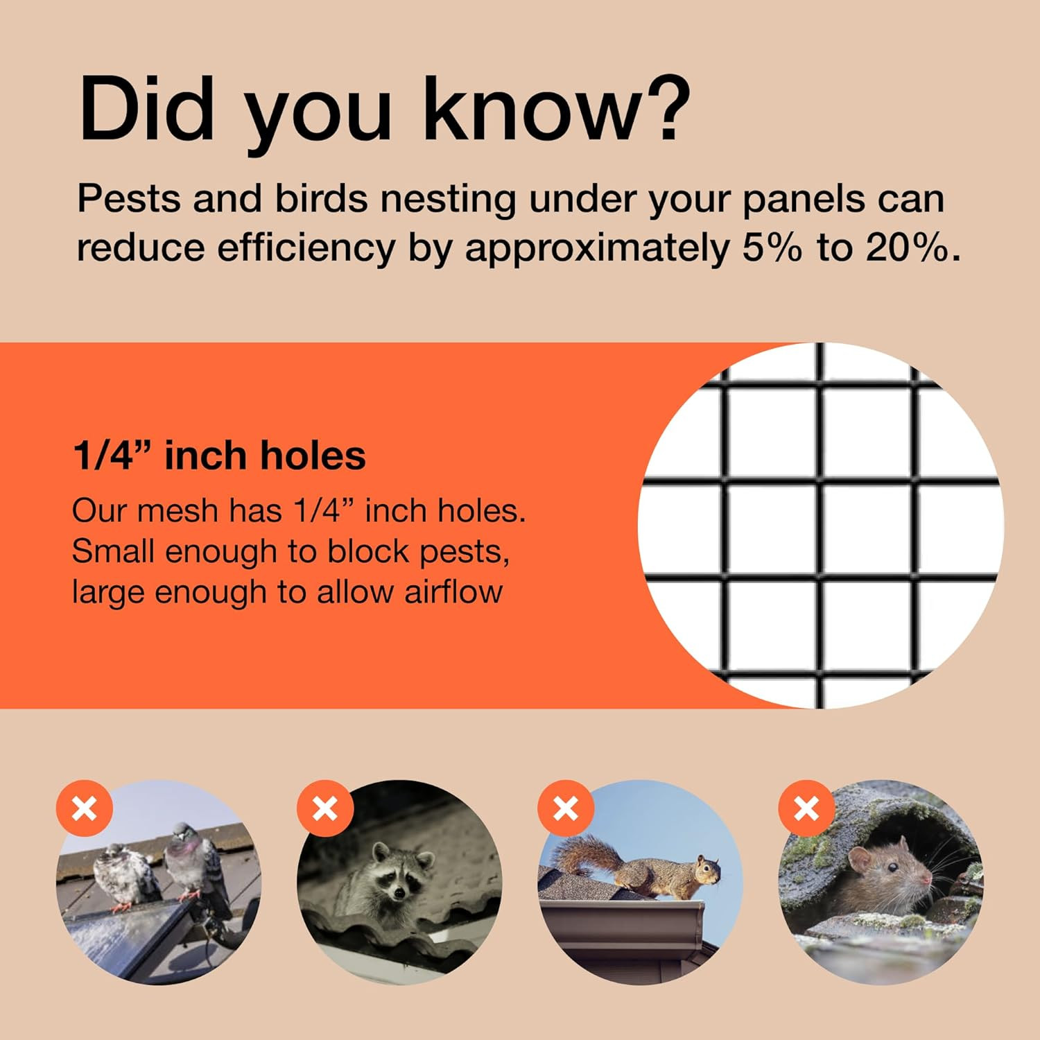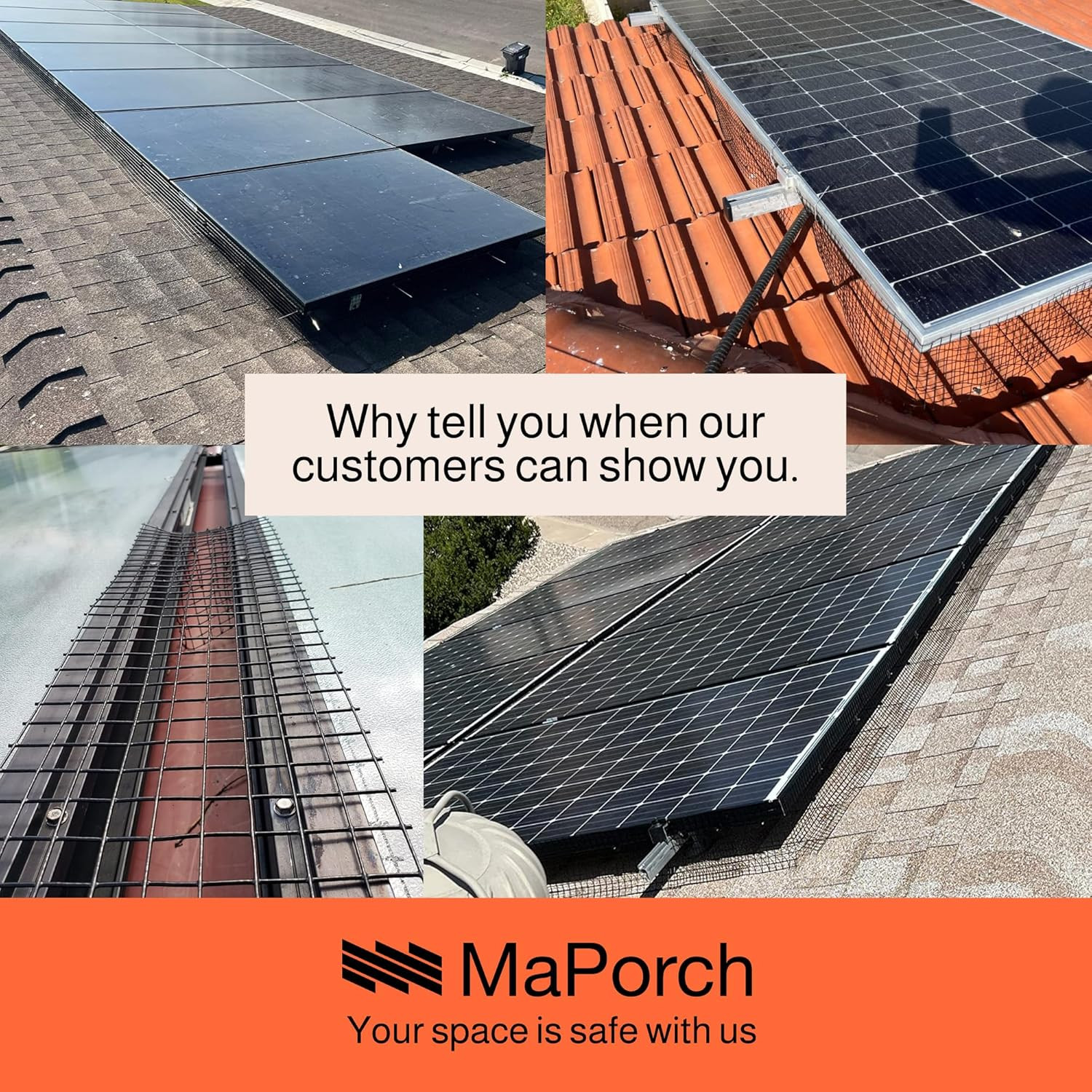 Store New Arrivals Add to Favorite View Feedback Contact 6"X120Ft PVC Coated Galvanized Steel,Black Solar Panel Bird Proofing Mesh Screen with 60 Fastener Clips, Cutting Scissor & Gloves for Solar Panels Description Item model number SPB Product Dimensions 12.2 x 12.2 x 5.51 inches Country of Origin China Item Weight 9.24 pounds Size 6"x120FT Superior Protection: Our MAPORCH critter guard for solar panels offers reliable and durable protection against birds and squirrels, protecting your investment from damage and debris caused by nesting critters. Count on our galvanized welded steel mesh with black PVC coating to create a secure barrier for solar panelsEasy Installation: Say goodbye to complicated installation from other bird deterrents. Our solar panel bird guard roll kit is quick and easy to setup. With 60 fastener solar panel clips, cutting scissor & gloves included, you can easily shape and fix our 1/2"x 1/2" wire mesh to what your panels needAlmost Invisible: Our squirrel guard not only protects your solar panels but also keeps your property looking just as you like it. Our black PVC-coated steel mesh is sleek and almost invisible, seemlessly blending into any environment. You may not see it, but the critters definitely willFor Every Season: With firm welding and fine mesh, MaPorch is designed for even the harshest conditions, giving you years of use. Our rigorous testing process shows outstanding performance every time.Trusted Quality: MaPorch rolls out top-notch products that are all about keeping your home and garden protected. Count on us for reliable solutions that make life easier Product Description Solar Panel Bird Guard Mesh Pigeon Solar Panel Mesh Protect Your Investment from Pests Did you know pests and birds nesting under solar panels can cut efficiency by 5–20%? Maporch's solar panel bird guard mesh blocks them out. With 1/4" holes, our critter guard for solar panels keeps birds, mice, and squirrels out while allowing airflow to prevent moisture damage. The only thing that should touch your solar panels is the sun. Bird Mesh & Solar Screen Clips Beginner Friendly Set Up New to solar panels? No worries. Maporch's bird nesting prevention mesh installs in 4 easy steps. Looking for a low maintenance solar screen roll? Our durable PVC-coated galvanized steel stands up to harsh weather, to you're not constantly climbing up to fix your wire guard. Your Space is Safe With Us ABOUT US We offer the best prices around on high quality products. Our E-store includes media such as books, movies, music and games while offering electronics, toys, sporting apparel, clothing, tools, general home, garden items and more. SHIPPING We are always working hard to ensure your package arrives as soon as possible. Please understand that some factors like weather, high postal traffic, and the performance of shipping companies are outside of our control. We offer free shipping to the lower 48 states and ship within 2 business days of payment, usually sooner. We do not accept P.O. Boxes. Please provide a physical address. For shipping outside of the continental USA, we only use eBay's Global Shipping Program.The item is shipped to KY and then sent to the rest of the world. International customers are responsible for all duties and taxes. Continue to check out in order to calculate costs for shipping the item to your country. Messages regarding eBay's Global Shipping Program MUST be directed at eBay EXCLUSIVELY. RETURNS We offer a 30-Day Return Policy on items which you are not completely satisfied with. You have the option for a full-refund or an exchange of the item. No returns are available on items shipped outside of the USA. PAYMENT We accept PayPal. CONTACT US This page content is yet to come Please ad us to your favorite seller and visit again later Thank You CUSTOMER SATISFACTION We try our very best to make sure every customer is completely satisfied. If there's a problem, message us! We're happy to help.
