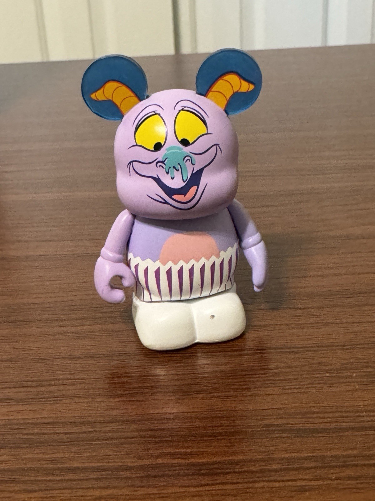 Disney Figment Vinylmation from the Bakery Mystery Series, designed by artist Ron Cohee.This collectible 3” Vinylmation features Figment styled as a cupcake bakery character with frosting-inspired artwork and classic purple dragon design inspired by EPCOT’s beloved mascot.Originally released as part of the Disney Bakery Mystery Series blind box collection.ConditionPre-owned and in good display condition. • Light signs of handling consistent with age • No major damage noted • Cupcake accessory is missing