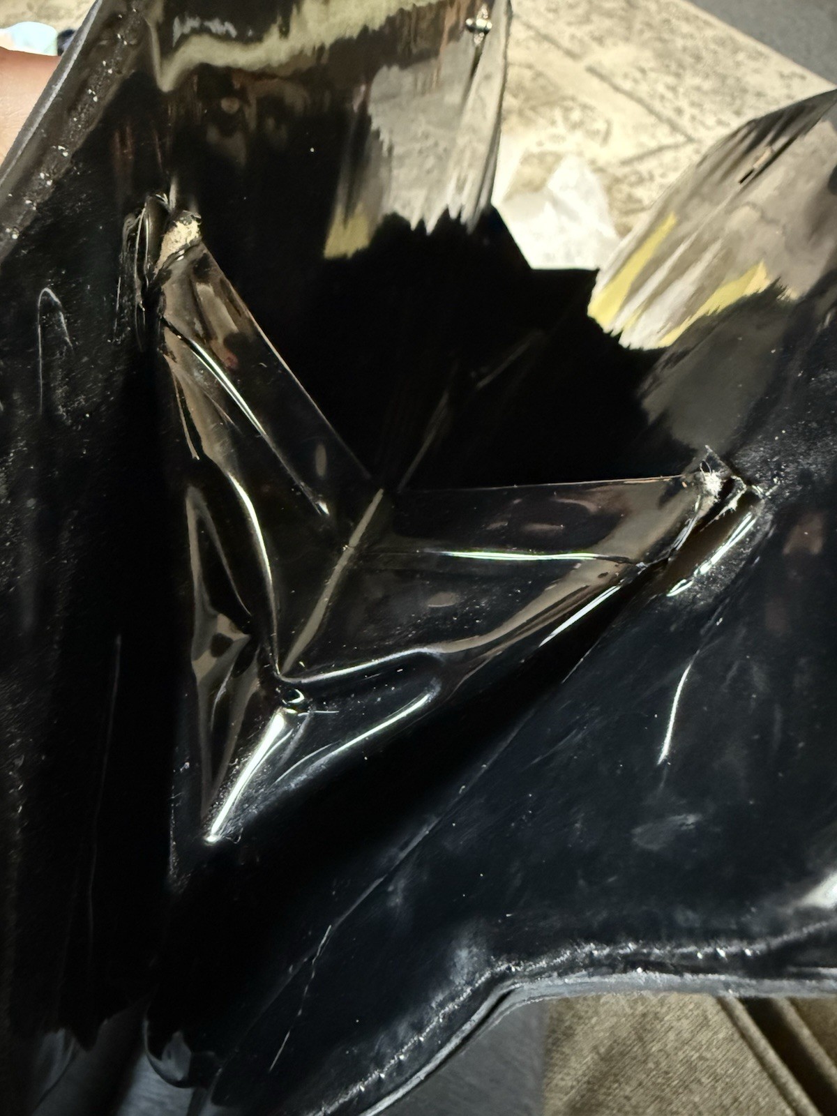 A rare find! From Universal studios Margaritaville. Jimmy Buffett Cheeseburger in paradise patent leather tote bag. 15” wide, clean and the only Condition issue being two small tears in the polyvinyl on the inside where the side opening comes together ( please see photos). Damage cannot be seen when the bag is closed.