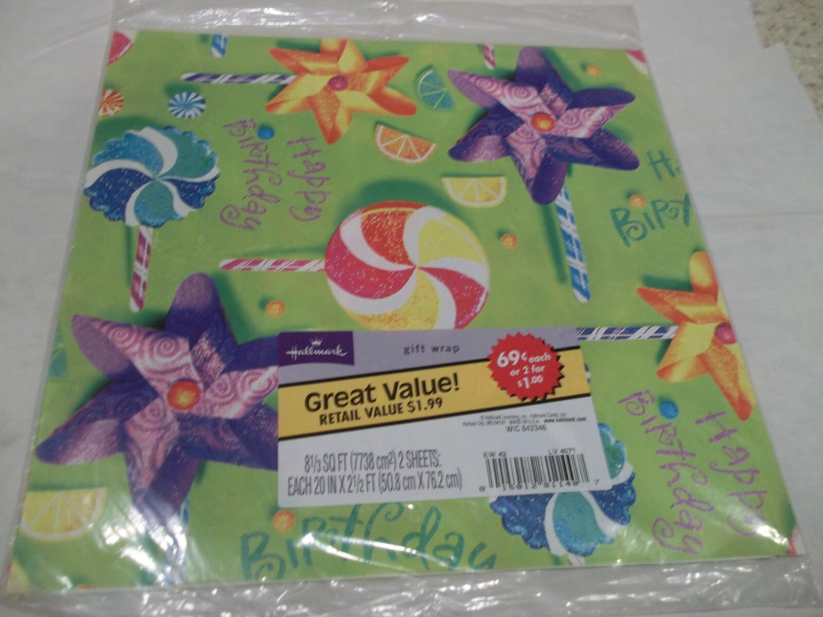 This is a 2 sheets of Suckers Lollipops gift wrap from Hallmark. It is 2.5 ft x 20".I do combine shipping just use the cart button. Please e-mail me with any questions and thanks for looking. a .aucCounter span:hover .aucCounterOrangeText .aucCounterBlueText Track Page Views WithAuctiva's FREE Counter
