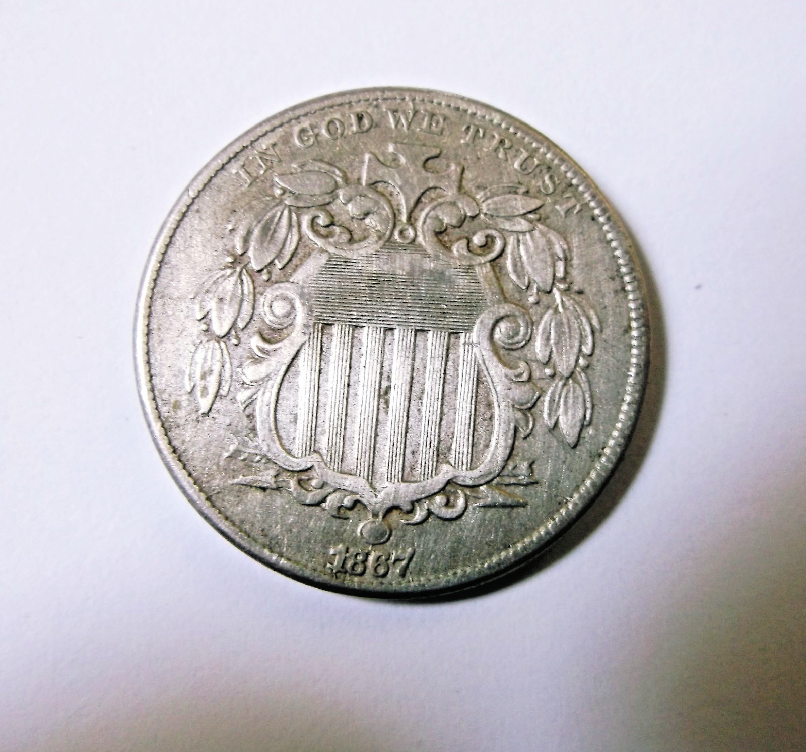 1867 Shield Nickel Coin - Very Fine Condition, Free Shipping