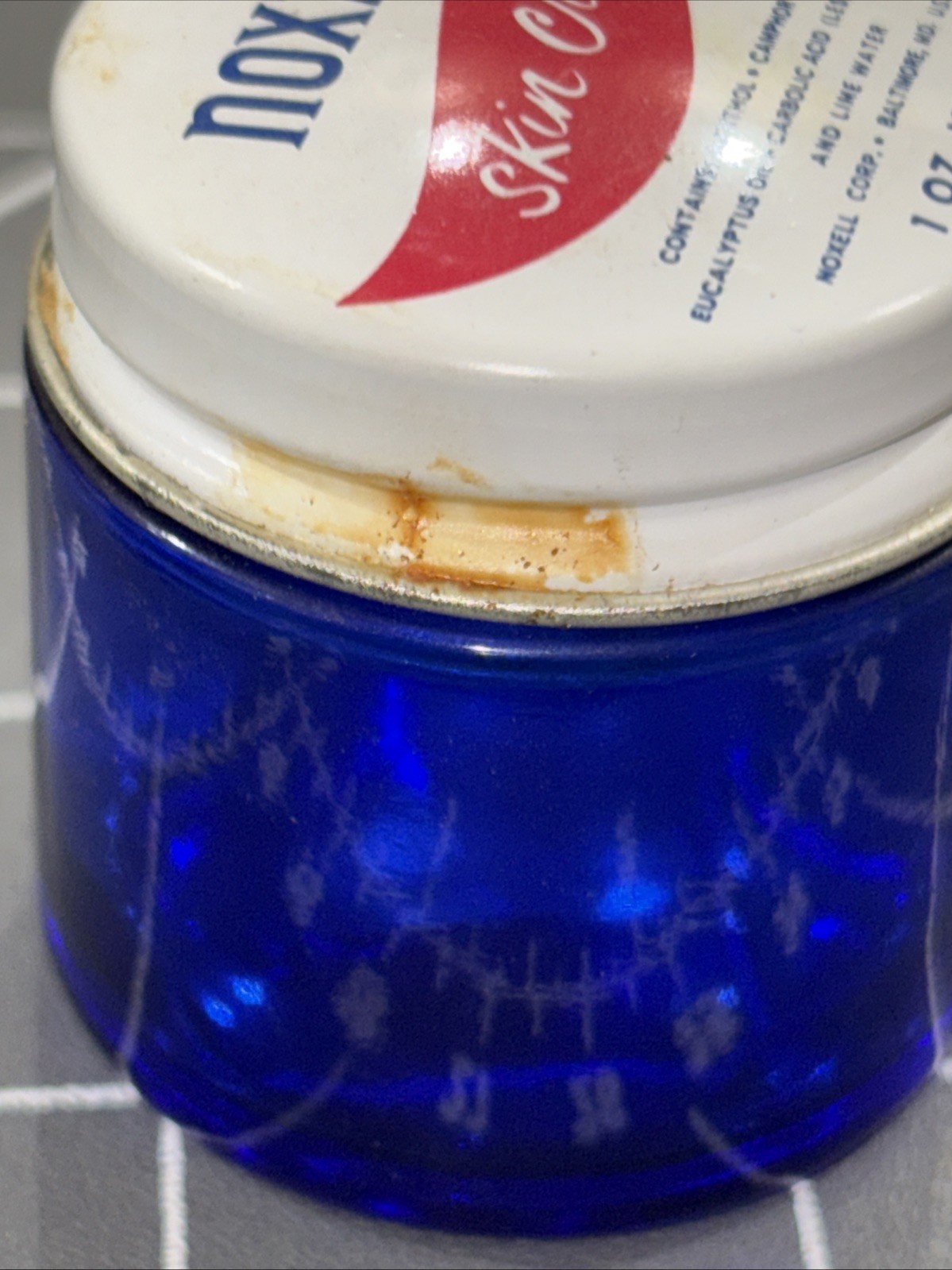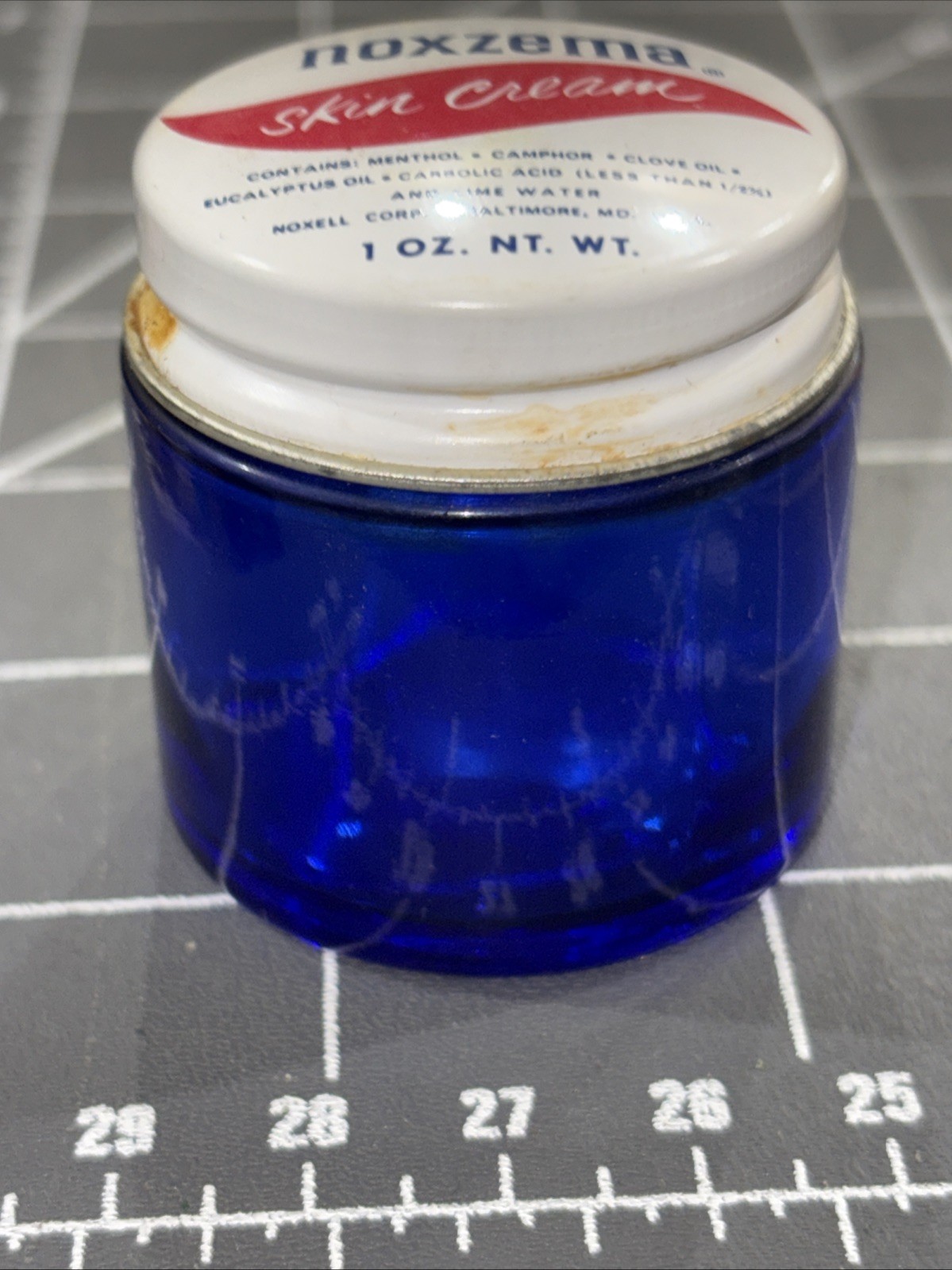 Vintage NOXZEMA Skin Cream Cobalt Blue Jar empty Specs