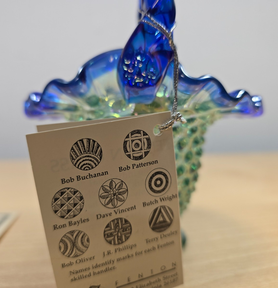 Item Description: Up for sale is this Fenton Hobnail Ruffled Sea Mist Green Basket, with Cobalt Blue Handle & Edge. In Very Good Used Condition. Comes with COA. Still has the Fenton sticker on the inside, note the sticker is starting to come loose.Please refer to the pictures for a closer look.I do my best to represent items as accurately as possible. If you have any questions regarding the item, please feel free to contact me and I will get back to you with an answer as soon as possible.Shipping & Handling: S&H for this item will include Delivery Confirmation. Signature Confirmation and Insurance may also be included on orders over $100. The item will be carefully packaged and shipped.International shipping is Not available for this item.Returns: Most items have a 30 day return policy, unless otherwise noted in the item description. Please contact me first, before returning an item.Items need to be returned in their ORIGINAL condition. Buyer pays return shipping. Please pack the item as carefully as it was shipped.