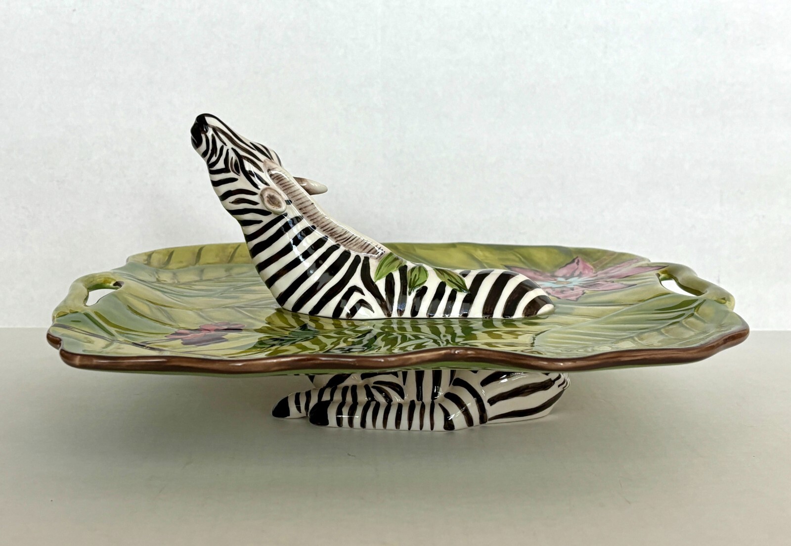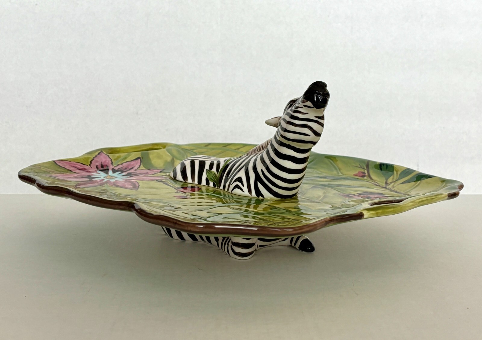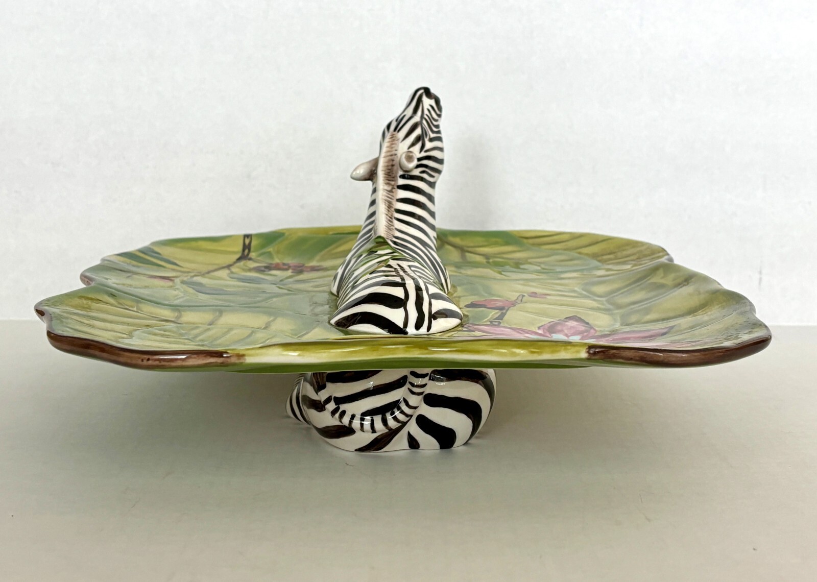 Tracy Porter Lotus Collection Server w/ Zebra Style Beautiful and unique serving tray. Excellent condition overall, but there is a tiny spot in the corner edge that seems like a chip, but it actually looks like the paint and glaze just missed that part. Measures approximately 12.75” x 12” x 5.5”. Weighs over 3 lbs. Photos show exact item being sold. Will ship free via USPS Ground Advantage (shipping may be upgraded to FedEx Ground or UPS Ground at no cost to buyer).