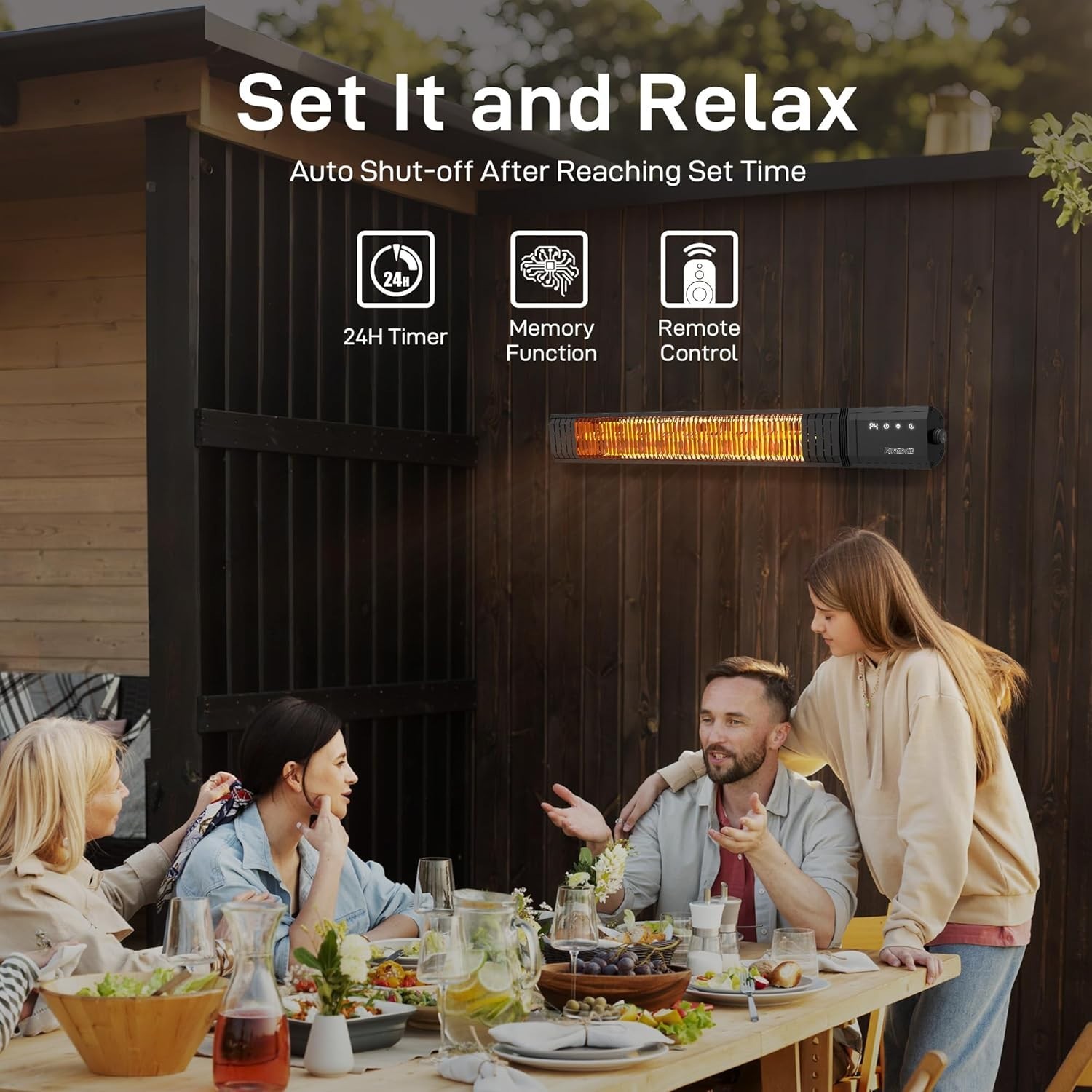 Powerful and Instant Heating for Year-Round Comfort The Cozyray 300 electric heater uses advanced infrared technology and 1500W of power to deliver higher heat output. It warms up in just 2.5 seconds—whether you're hosting a winter BBQ, relaxing on the deck, or working late in the garage, this outdoor heater delivers cozy heat right when you need it. No waiting, no shivering—just instant comfort from a reliable patio heater or garage heater.Flexible Installation for Indoor and Outdoor Use Designed with wall-mounted convenience, this infrared heater easily adapts to any space—whether you're heating a backyard patio, restaurant terrace, home workshop, or garage. Its low-profile design and powerful performance make it a smart choice as a wall heater, electric heater, or space heater for indoor use. It’s perfect for both open-air areas and enclosed rooms.4 Heat Levels and 24-Hour Timer for Personalized Comfort With four adjustable heat settings and a 24-hour timer, this patio heater lets you set the perfect temperature for any situation. Whether you're using it as a heater indoor or outdoor heaters for patio, the memory function recalls your last setting—making comfort just a click away. No more re-adjusting every time you turn it on.Built to Last Through All Weather Conditions Engineered with IP65 waterproofing and a tough powder-coated aluminum body, the Cozyray 300 is built for year-round use. Rain, wind, or dust—this outdoor heater keeps working reliably. It's an excellent replacement for traditional fireplace heaters, portable heaters, or pellet heaters for outdoor use—providing dependable warmth no matter the season.Smart Power Usage with Hassle-Free Support This wall heater operates at a maximum of 1500W using a standard 110V outlet. In extremely cold conditions, its effectiveness may be limited, making it ideal for moderately chilly climates. Every unit comes with a 1-year warranty and access to 24/7 customer service. Whether you're setting it up as a patio heater for outdoor use or a garage heater electric, our team is always here to help.
