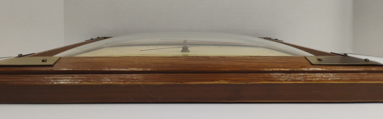 VTG Avante Quartz Wall Clock Bubble Glass, Wood Frame with Brass Corners 80's