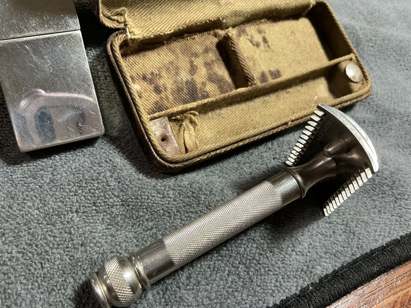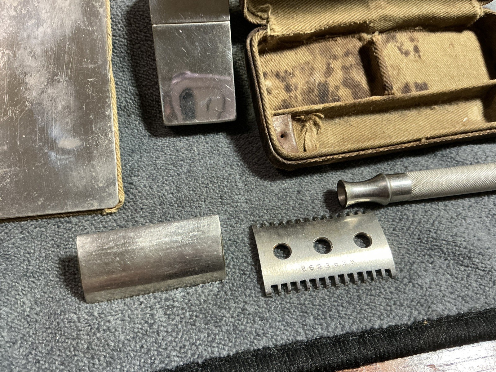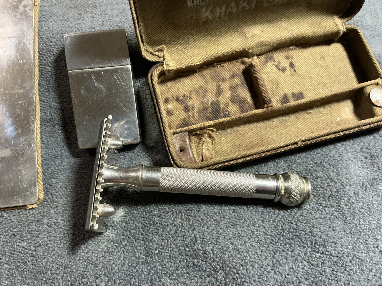 Vintage US. WW1 Era Gillette Khaki Field Razor Set with Mirror