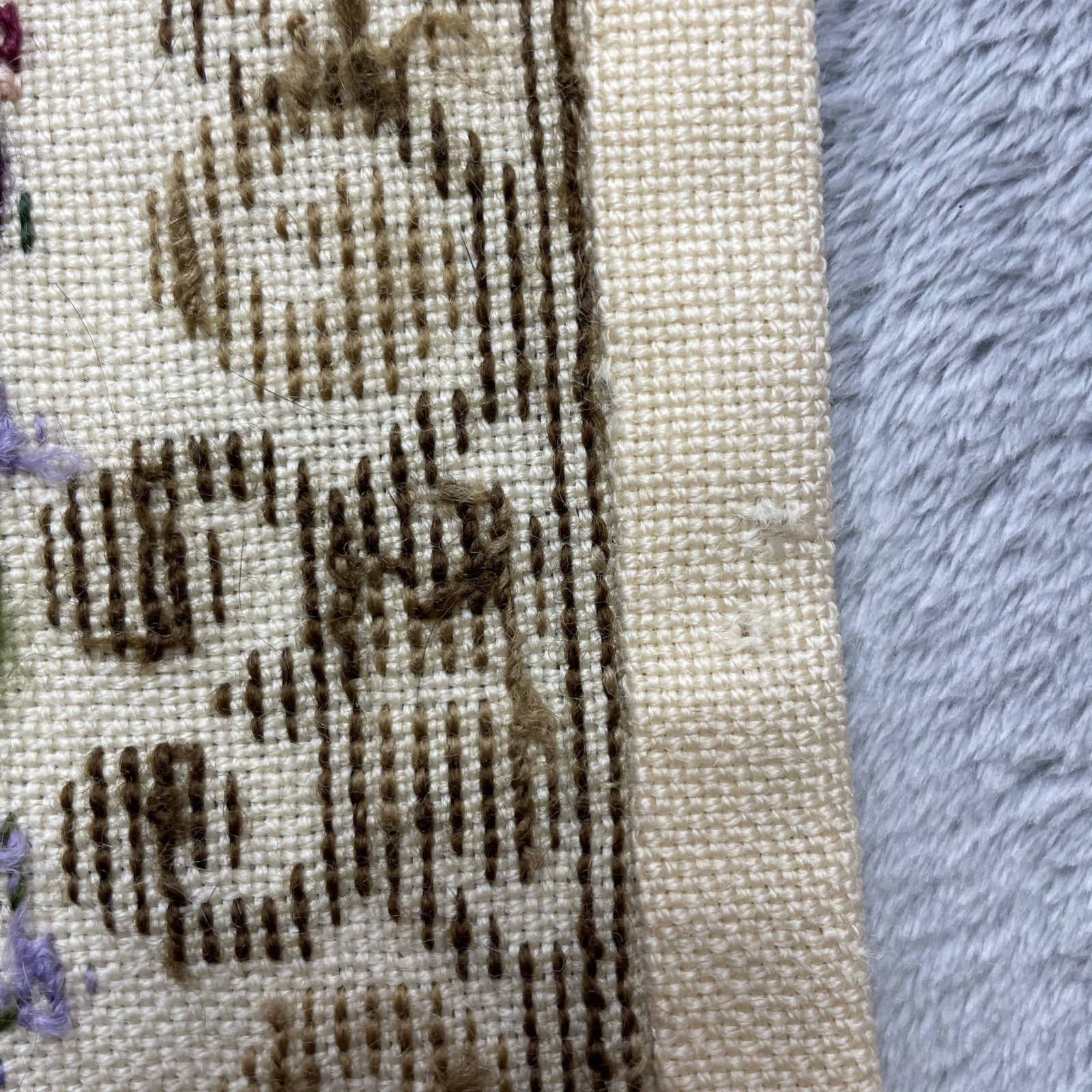 Vtg Handmade Cross Stitch Table Runner Dresser Scarf 12"x35” Victorian Floral Specs