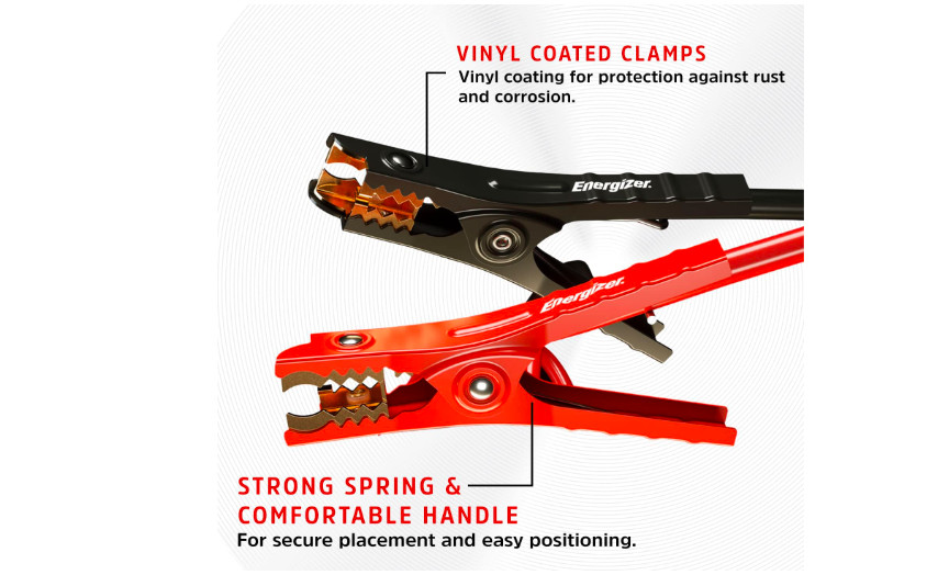 size cars and small/compact carsTHICK VINYL COATING - Includes a strong spring and a comfortable handle for secure placement and easy positioning. Thick vinyl coating for protection against rust and corrosion.CARRYING CASE INCLUDED - Our Energizer jumper cables come with a high-grade travel bag for easy transport and compact storage.TANGLE FREE CCA BOOSTER CABLES - 16 Foot length makes it easy to reach from one car battery to another. Copper clad aluminum cables remains flexible even at -40°C.Free Shipping: within the 48 U.S. statesShipment only to the lower 48 states. We do NOT ship to PO BoxesReturns:We offer a 30 day return policy from the receiving date.All items purchased must be returned in the same condition as they were delivered in.Items defective upon receipt must be packaged in their retail packaging as if new and returned with a detailed description of the problem.